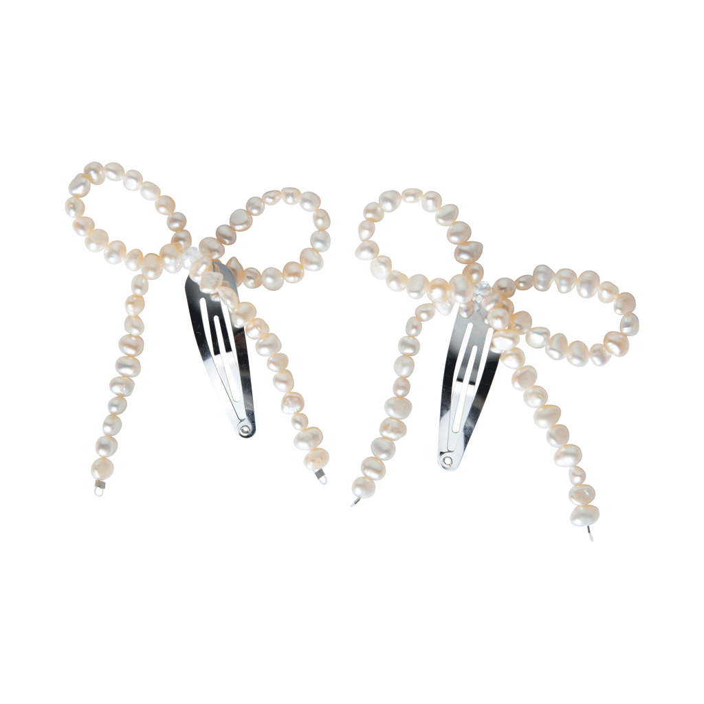 Freshwater Pearl Bow Clips features ivory freshwater pearls.