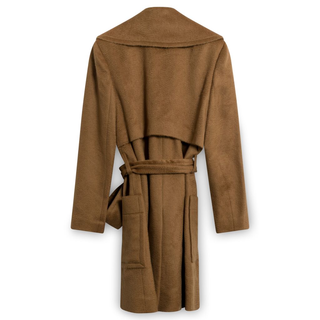 This Herron wool overcoat customized through Frilly and features a large lapel collar neckline, front button-down closure, belted self-tie waist, front pockets, and a storm flap at the back. Gently worn, in good condition.