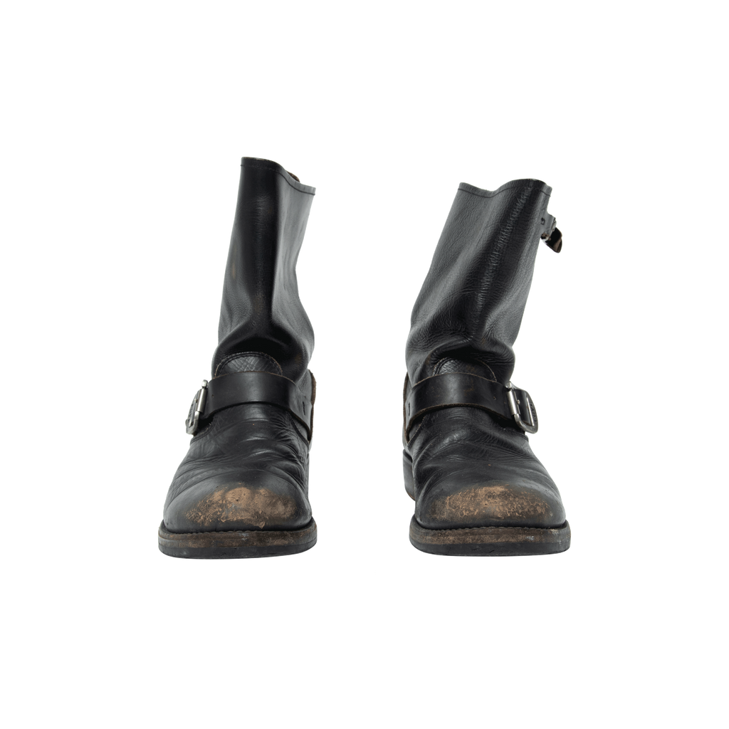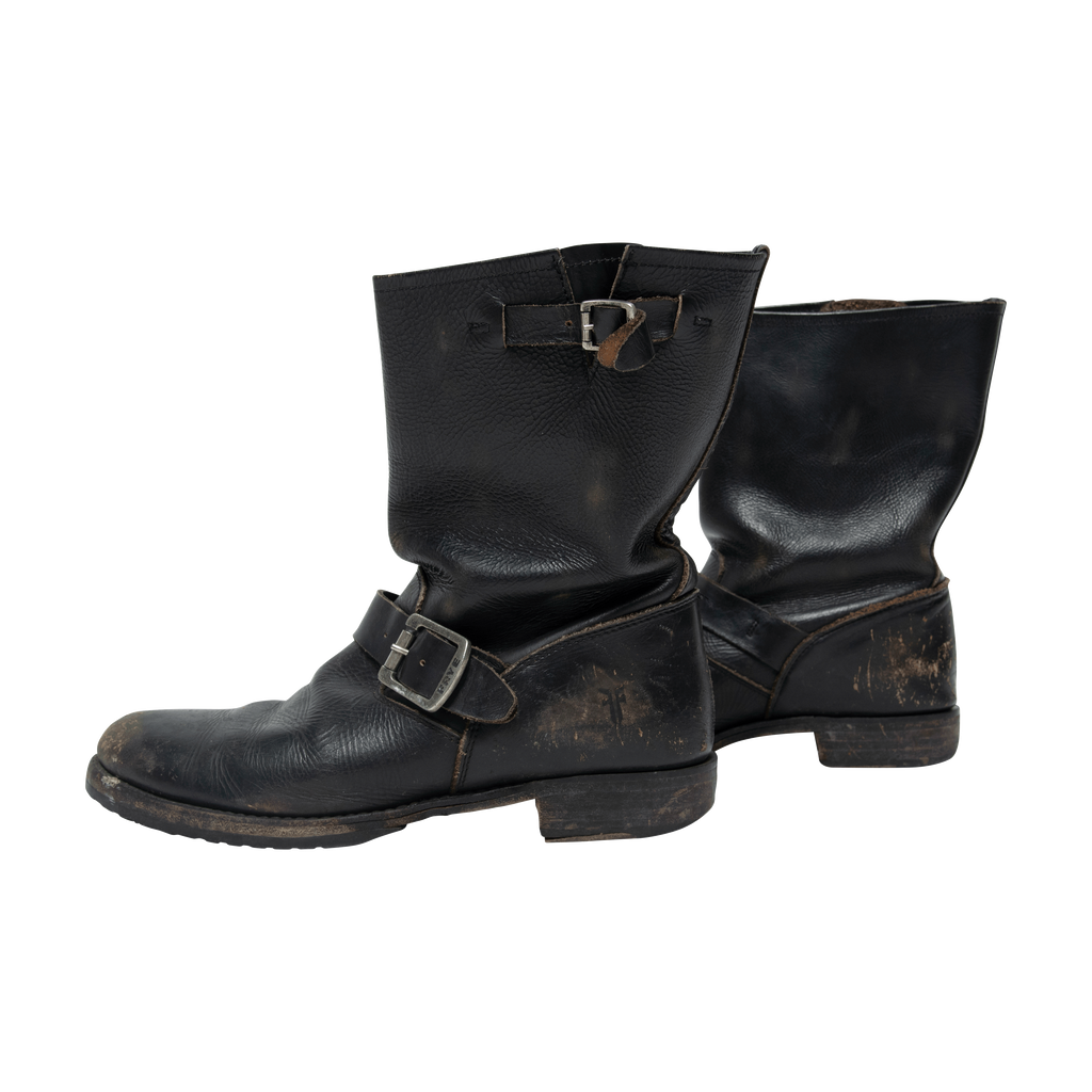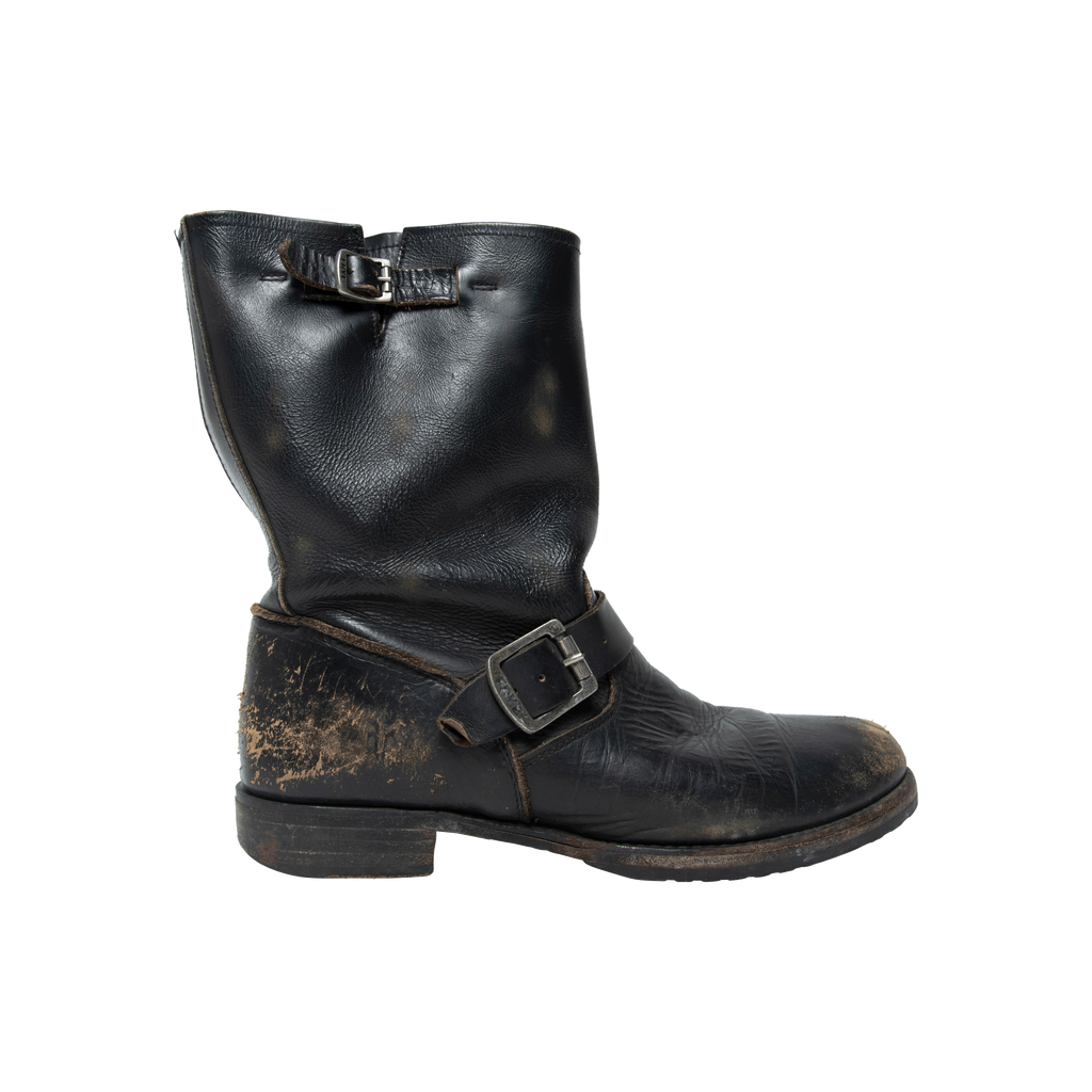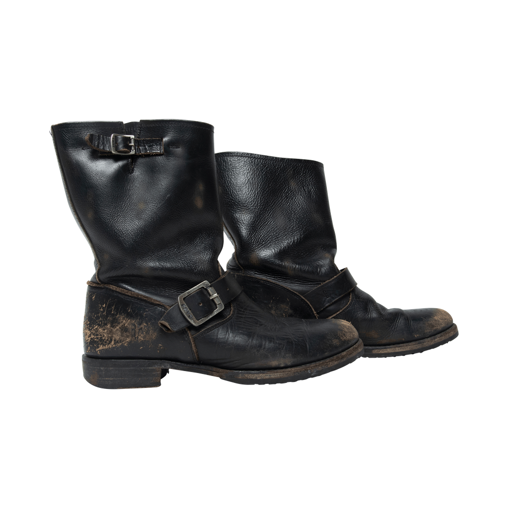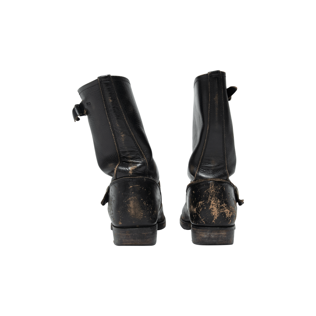Condition: Fair with distress leather detail wear on the front and back of the boot. Minor wear on the sole.