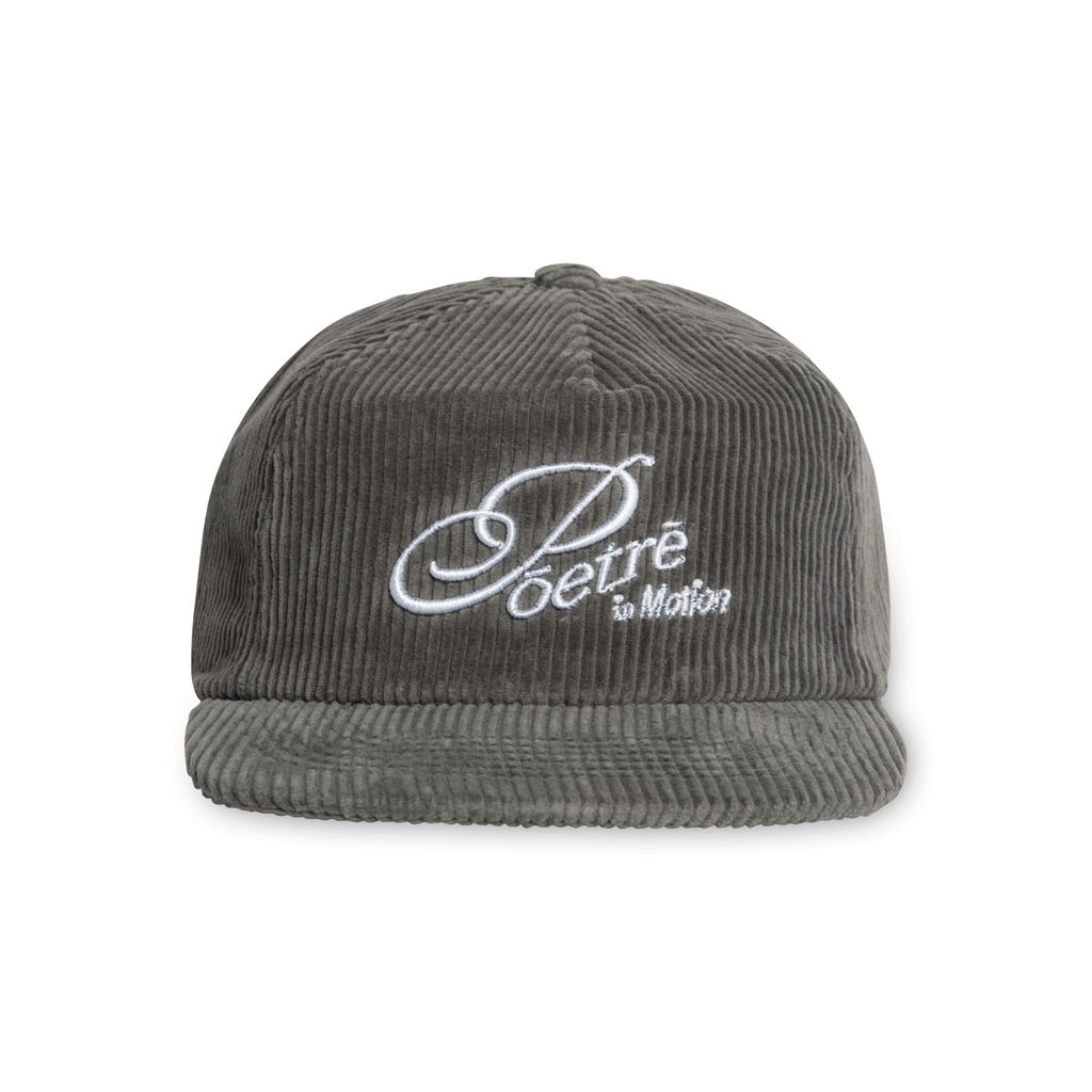 Taking it back to the basics. The hats that represent the essential structure and basis of Poētrē in Motion–stamped with the primary logo.Middle-profile, flat bill cap