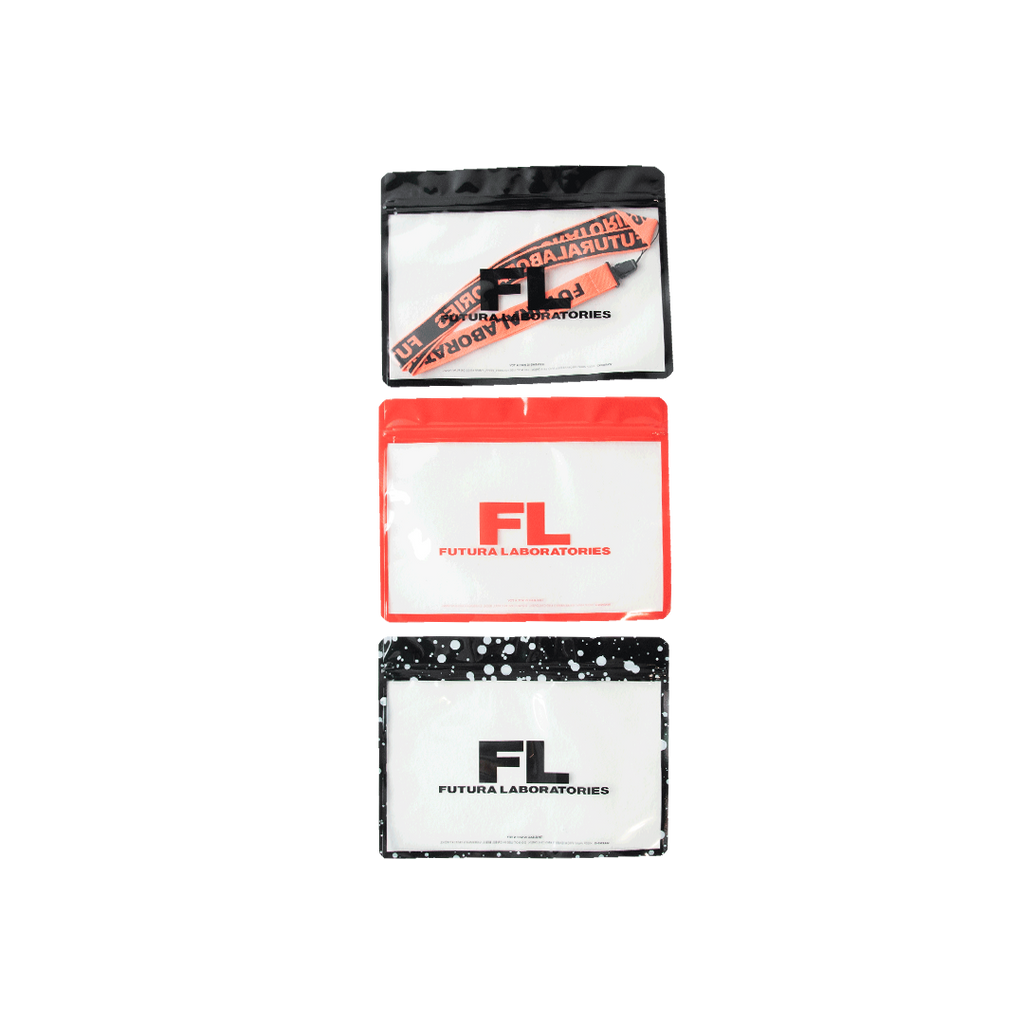 Futura Labs 3 Pouch Pack with Nylon Lanyard features see through plastic carrier bags and lanyard.