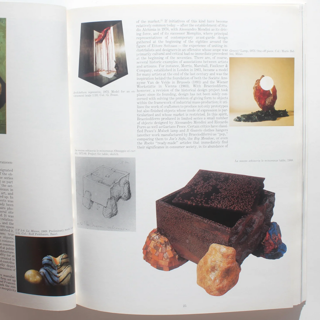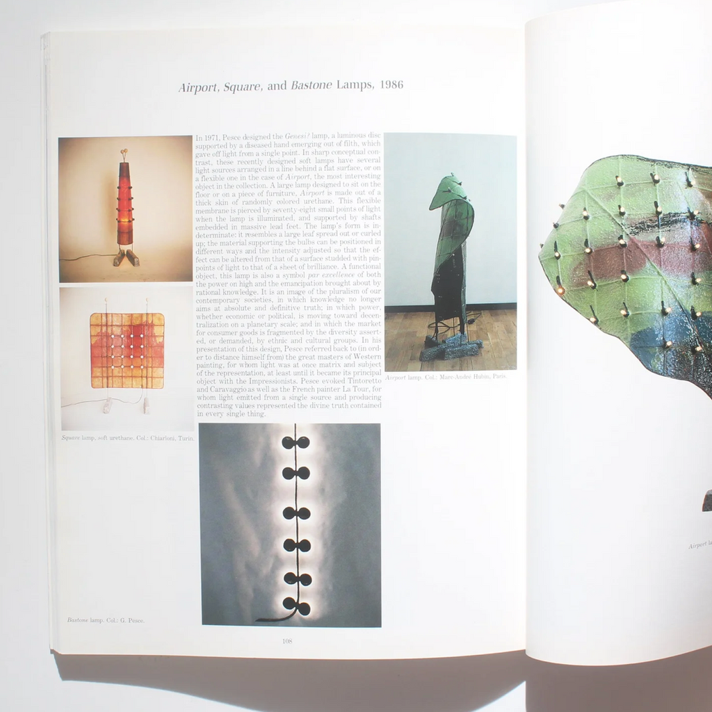 Gaetano Pesce: Architecture, Design and Art (1989) explores the Italian designer’s unconventional body of work. It brings together his experimental furniture, architectural projects, and sculptural pieces to show how he fused art, design, and function.