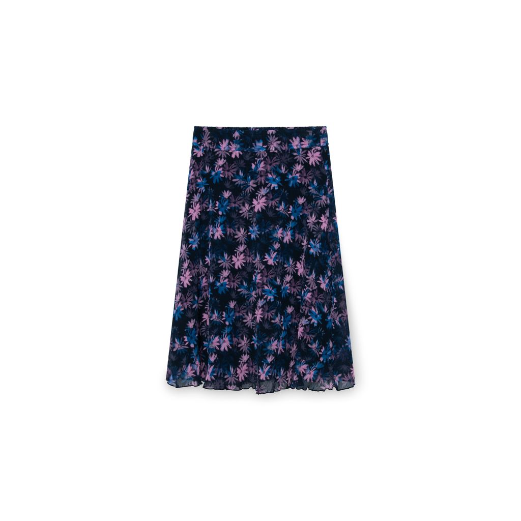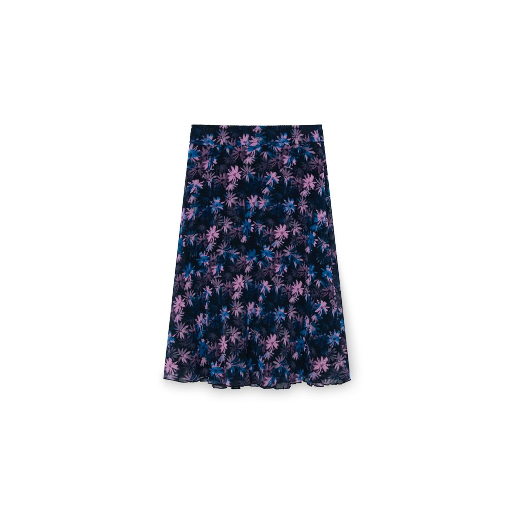 Ganni Pleated Georgette Skirt features elasticized waistband, lettuce edge hem, and high-rise fit.