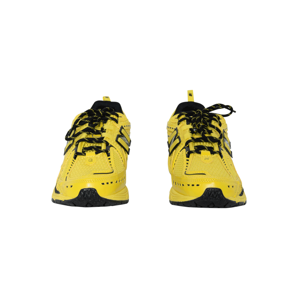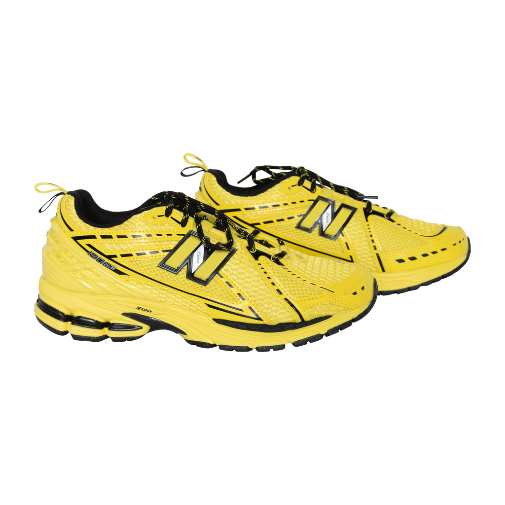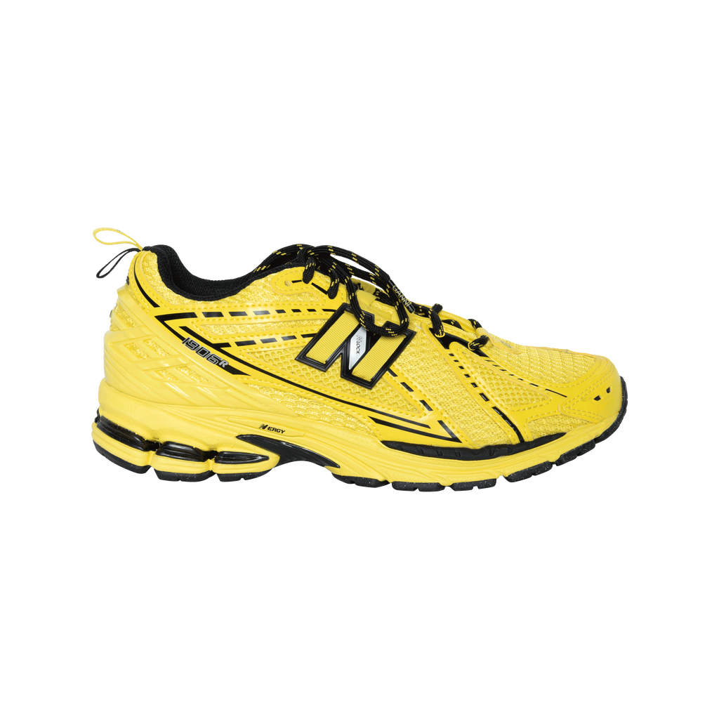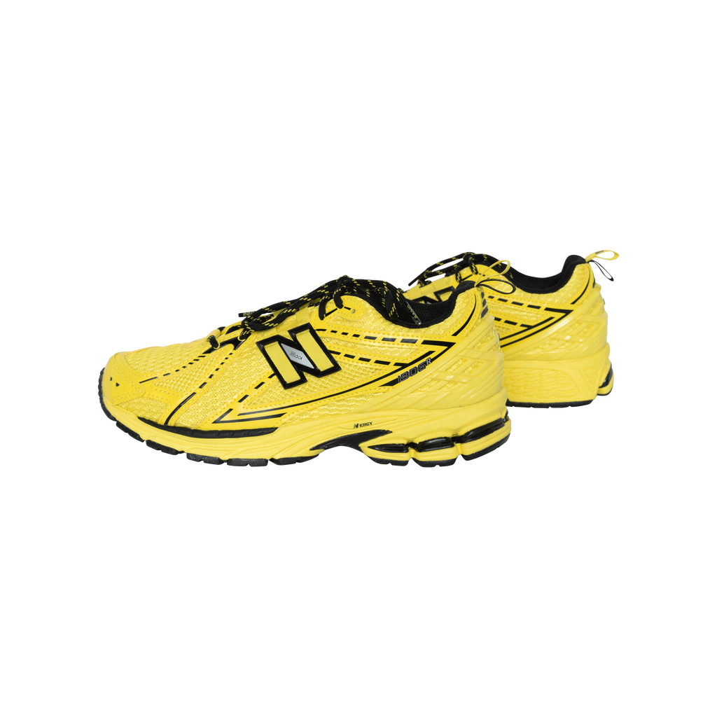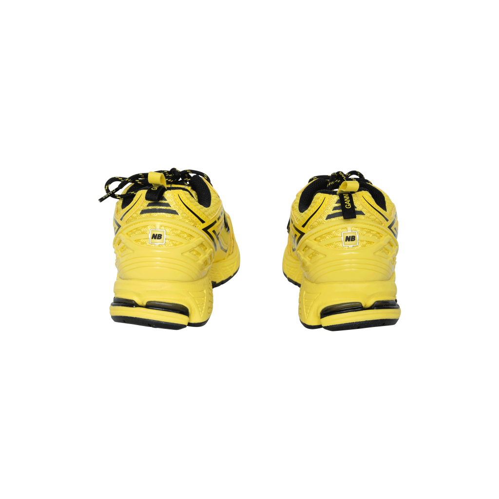 Ganni x New Balance 1906r Sneakers in Yellow features mesh panelling, logo patch on side, round toe, front lace up fastening, logo patch at tongue, pull tab at heel, branded insole, and rubber sole.