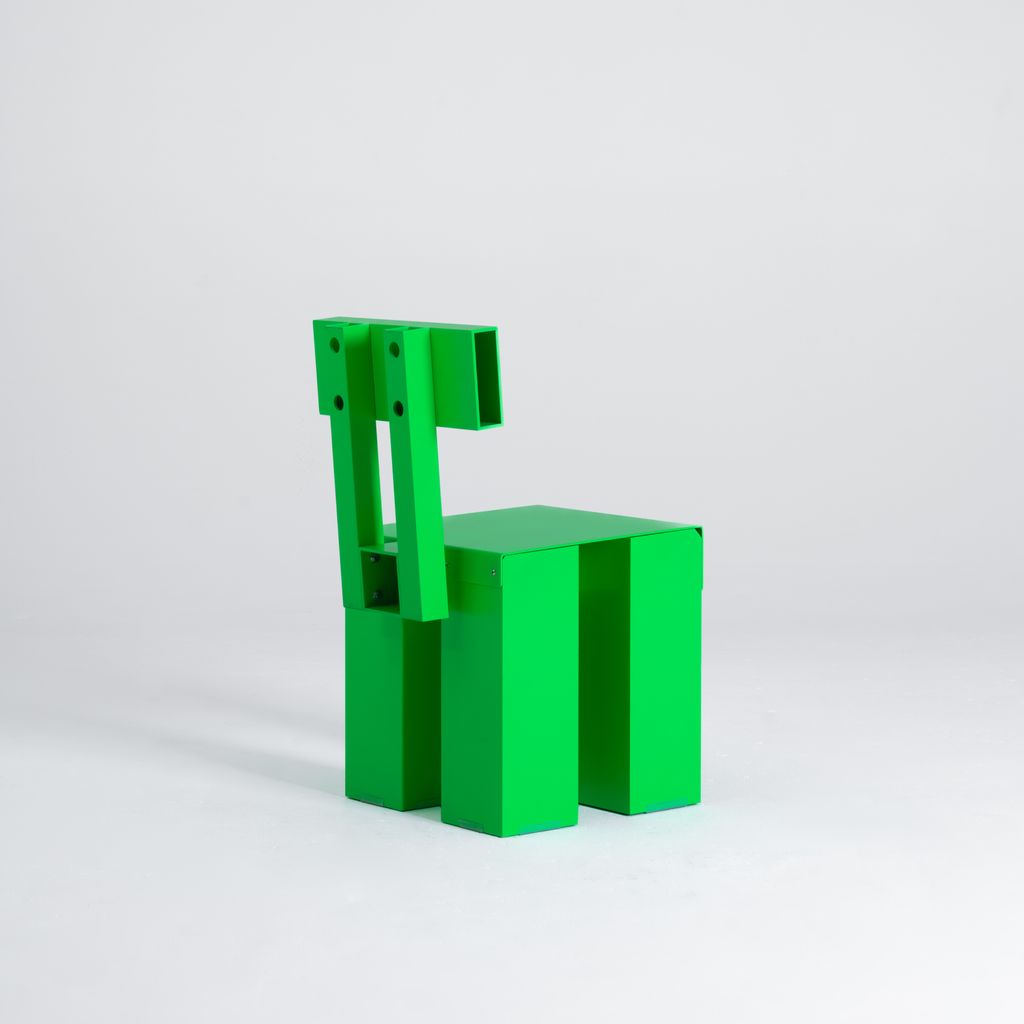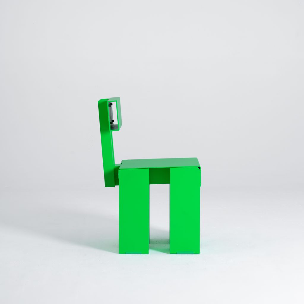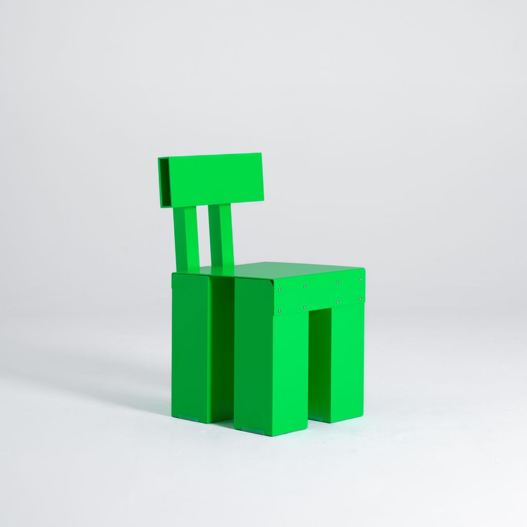 The GD-AC1 is a substantial Brutalist accent chair crafted from brake-formed 5052 aluminum plate and laser-cut 6061 aluminum square tube. Its bold form is further enhanced by a vibrant powder coating, emphasizing its striking presence. Rooted in Constructivist and Brutalist principles, the design highlights clear construction methods and a commanding structural aesthetic. Each piece is made to order and individually numbered, enhancing its originality and collectible value. Designed and fabricated in Salt Lake City, Utah, the GD-AC1 has a lead time of 5-8 weeks.