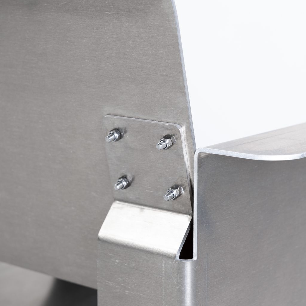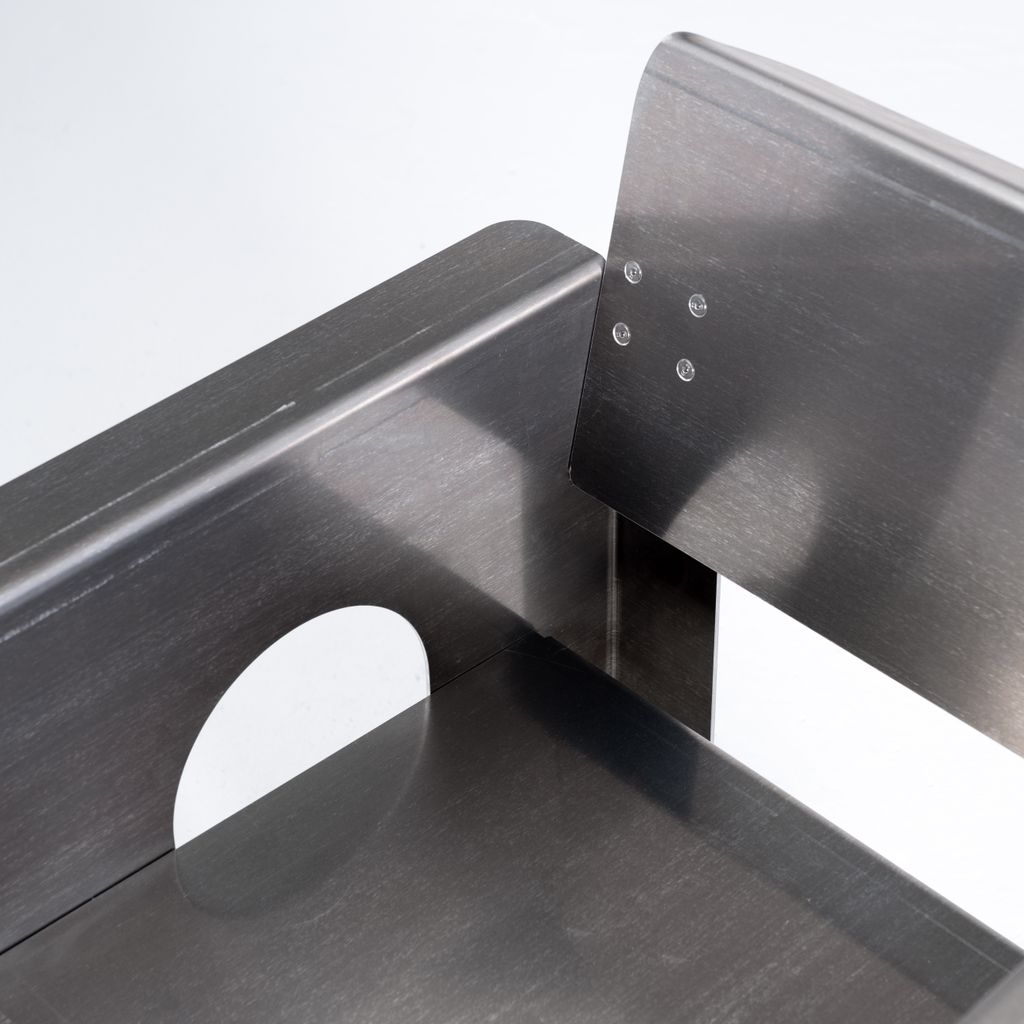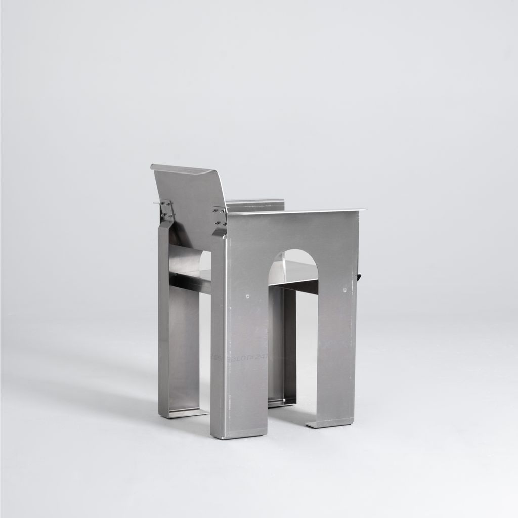 The GD-AC2 is the brake-formed accent chair counterpart to the GD-LC2 lounge chair. Crafted from raw 5052 aluminum, it reflects a commitment to material honesty and precision. Inspired by Constructivist and Brutalist principles, the design emphasizes clear construction methods and an elevated industrial aesthetic that balances function with visual clarity. The GD-AC2 can also be a striking dining chair. Each piece is made to order and individually numbered, enhancing its originality and collectible value. Designed and fabricated in Salt Lake City, Utah, the GD-AC2 has a lead time of 5-8 weeks.