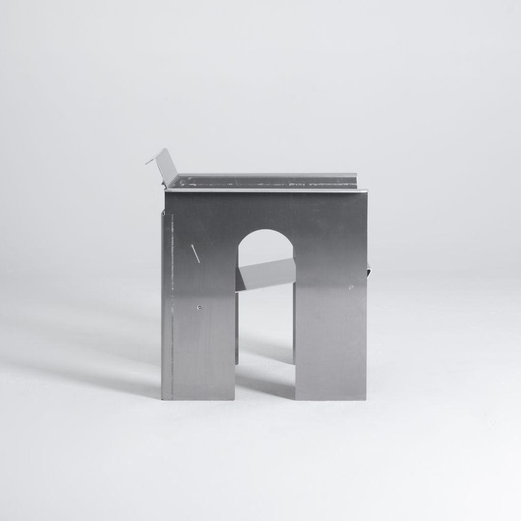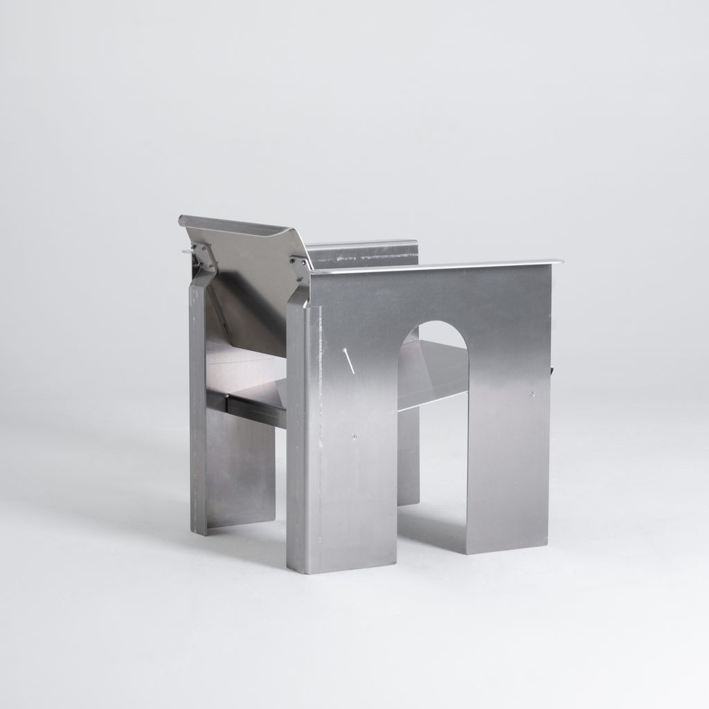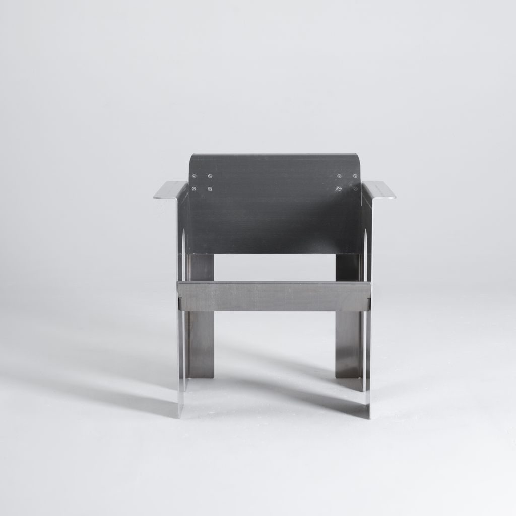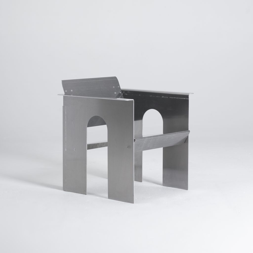 The GD-LC2 is the brake-formed lounge chair counterpart to the GD-AC2 accent chair. Crafted from raw 5052 aluminum, it embodies a commitment to material honesty and precision. Drawing from Constructivist and Brutalist principles, the design emphasizes clear construction methods and an elevated industrial aesthetic that balances function with visual clarity. Each piece is made to order and individually numbered, enhancing its originality and collectible value. Designed and fabricated in Salt Lake City, Utah, the GD-LC3 has a lead time of 5-8 weeks.