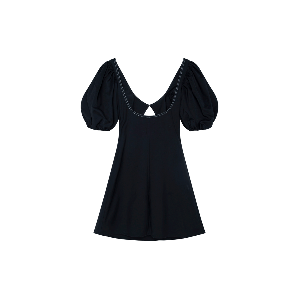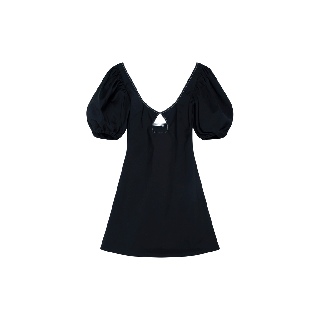 Georgia Alice Black Mia Mini Dress features keyhole detail in front with hook and eye closure, pull sleeves, and mini length.