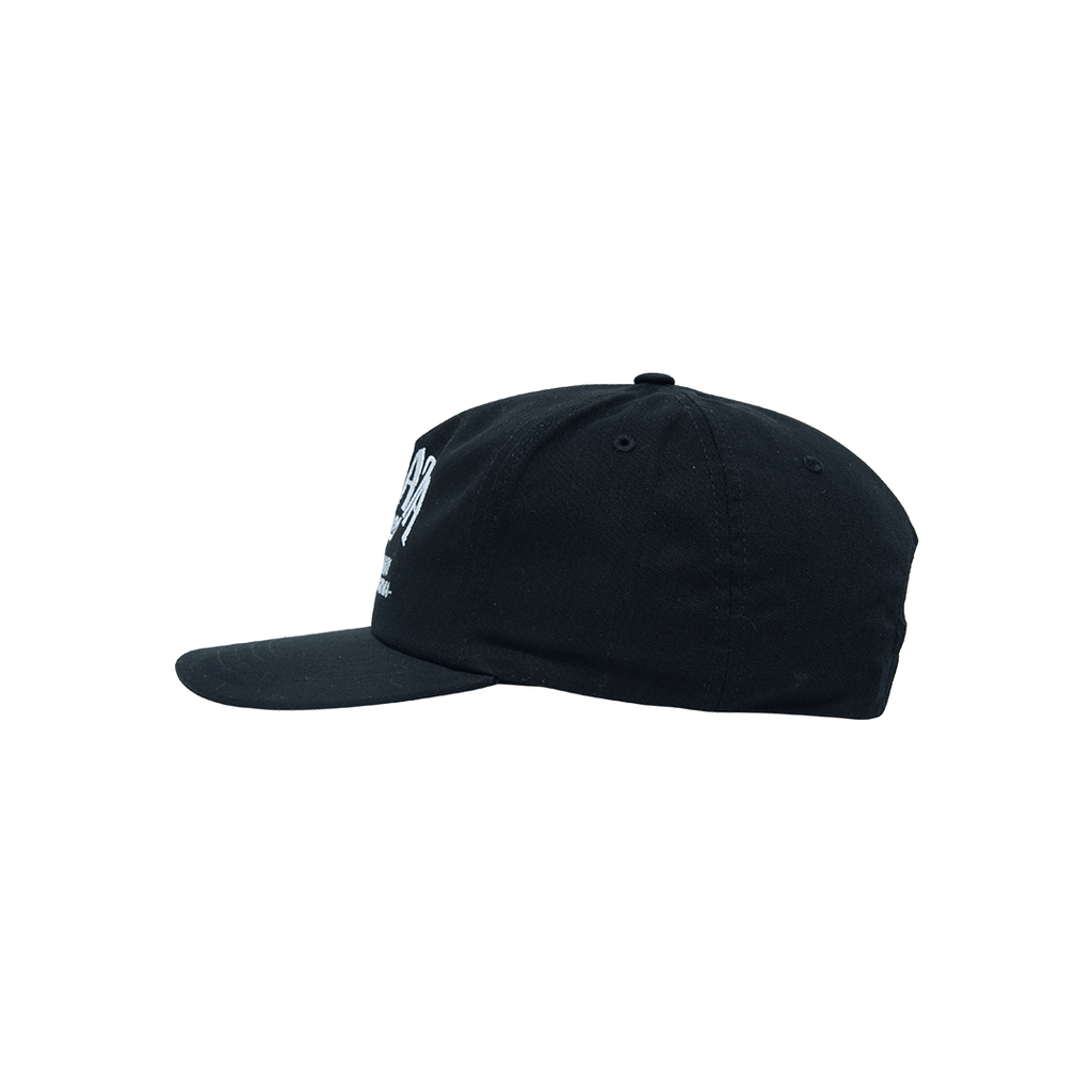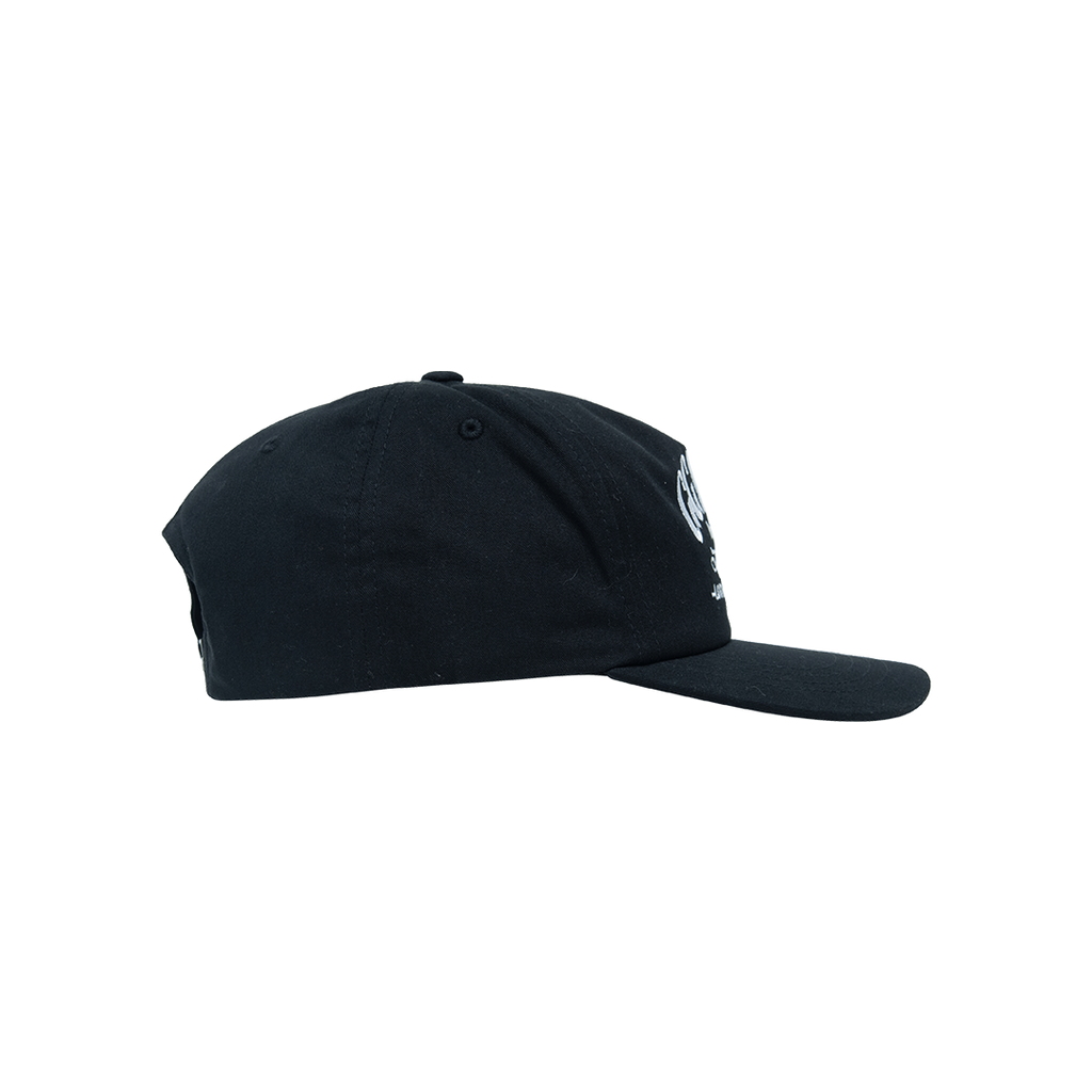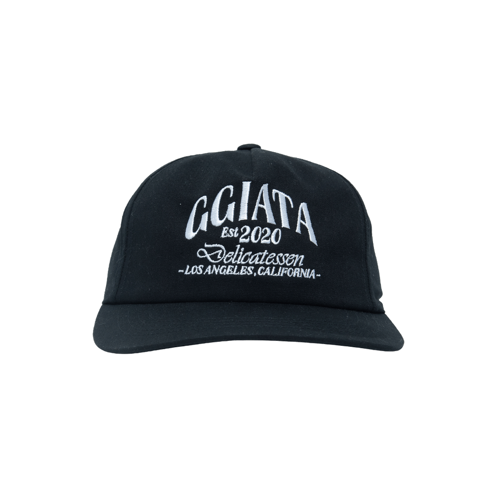 Ggiata Black Five Panel Hat features embroidered design and snap back closure.