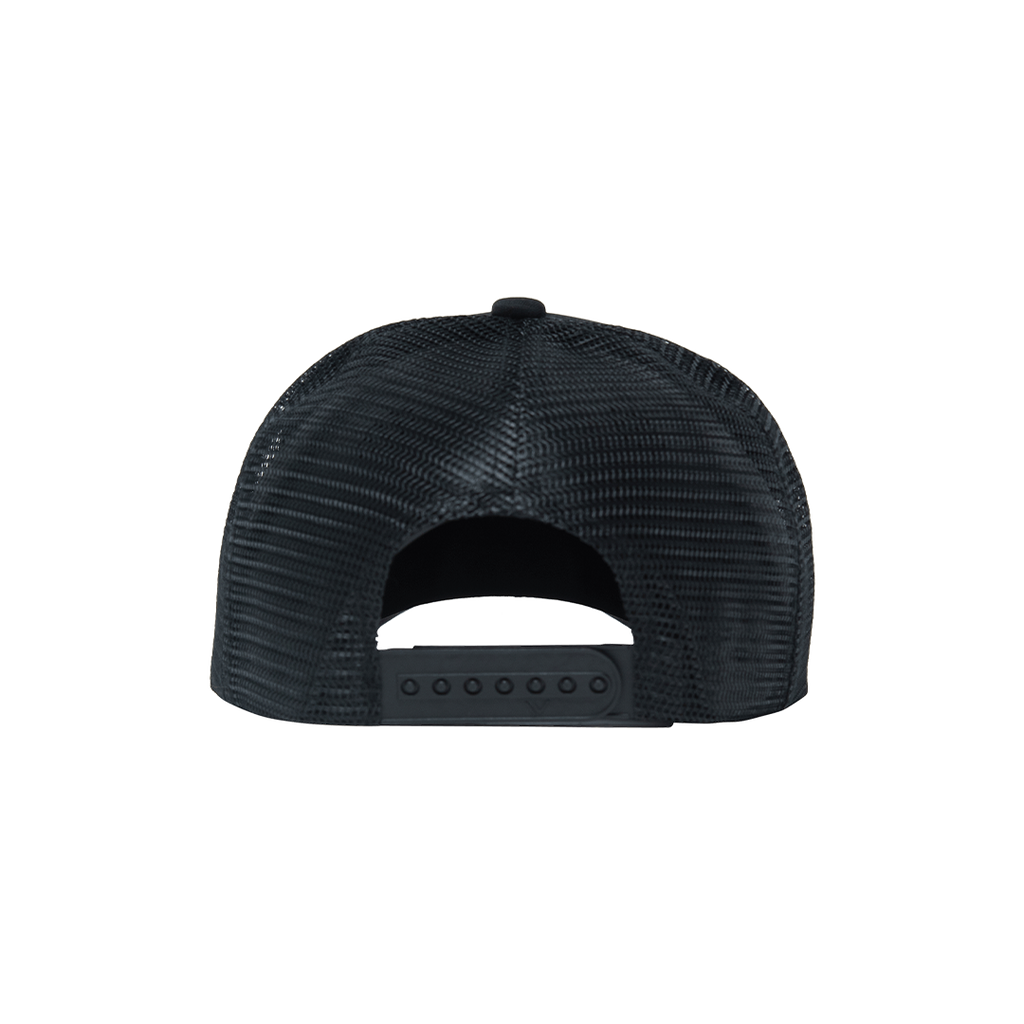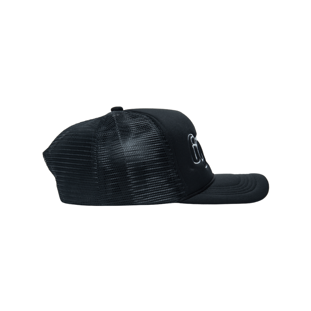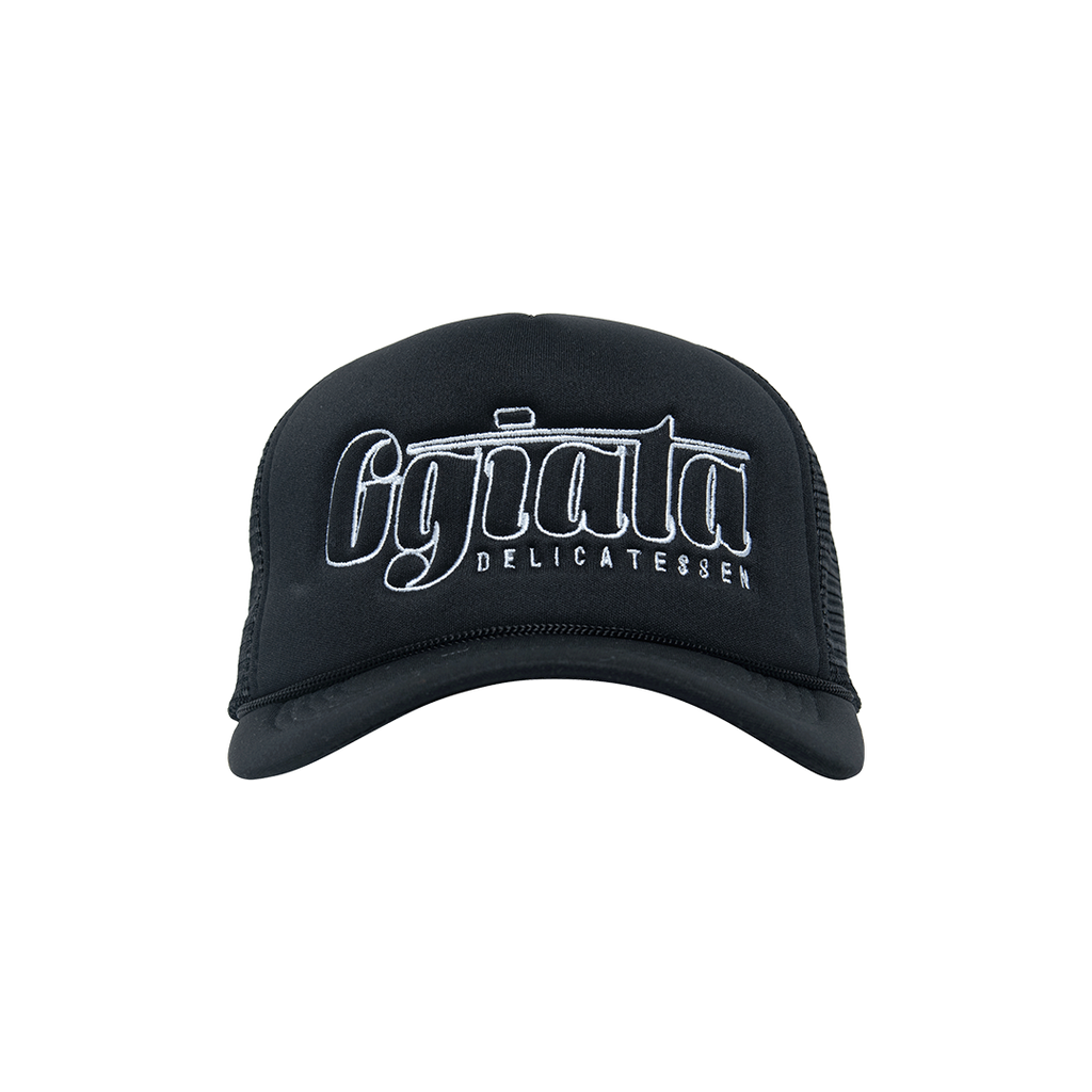 Ggiata Black Trucker Hat features embroidered design and snap back closure.