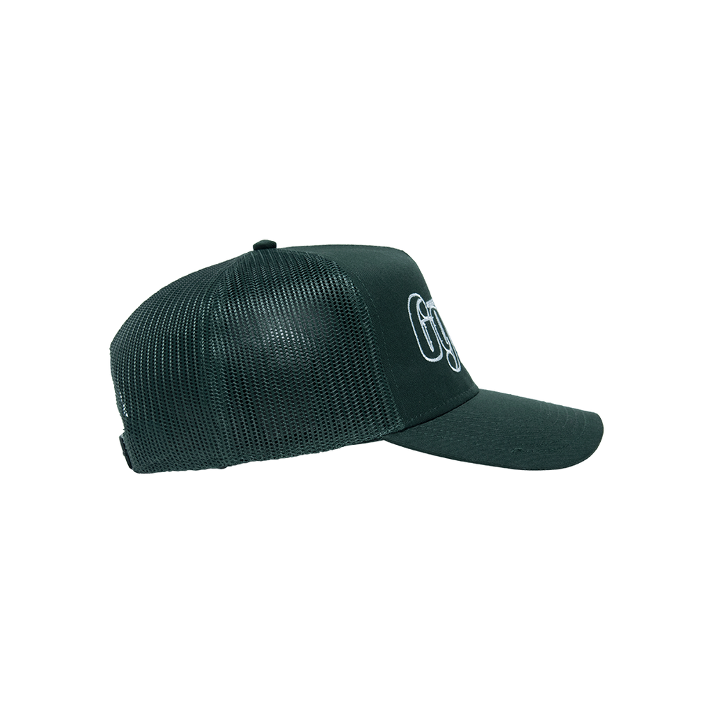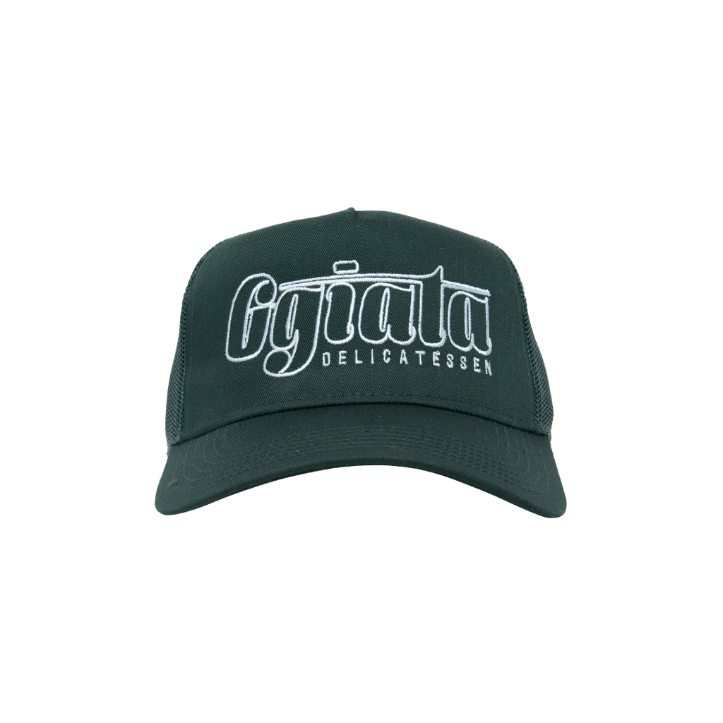 Ggiata Green Trucker Hat features embroidered design and snap back closure.