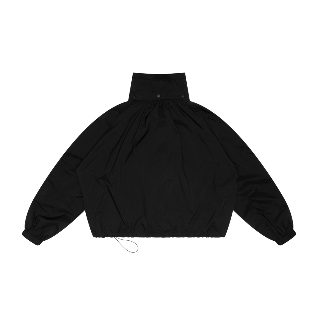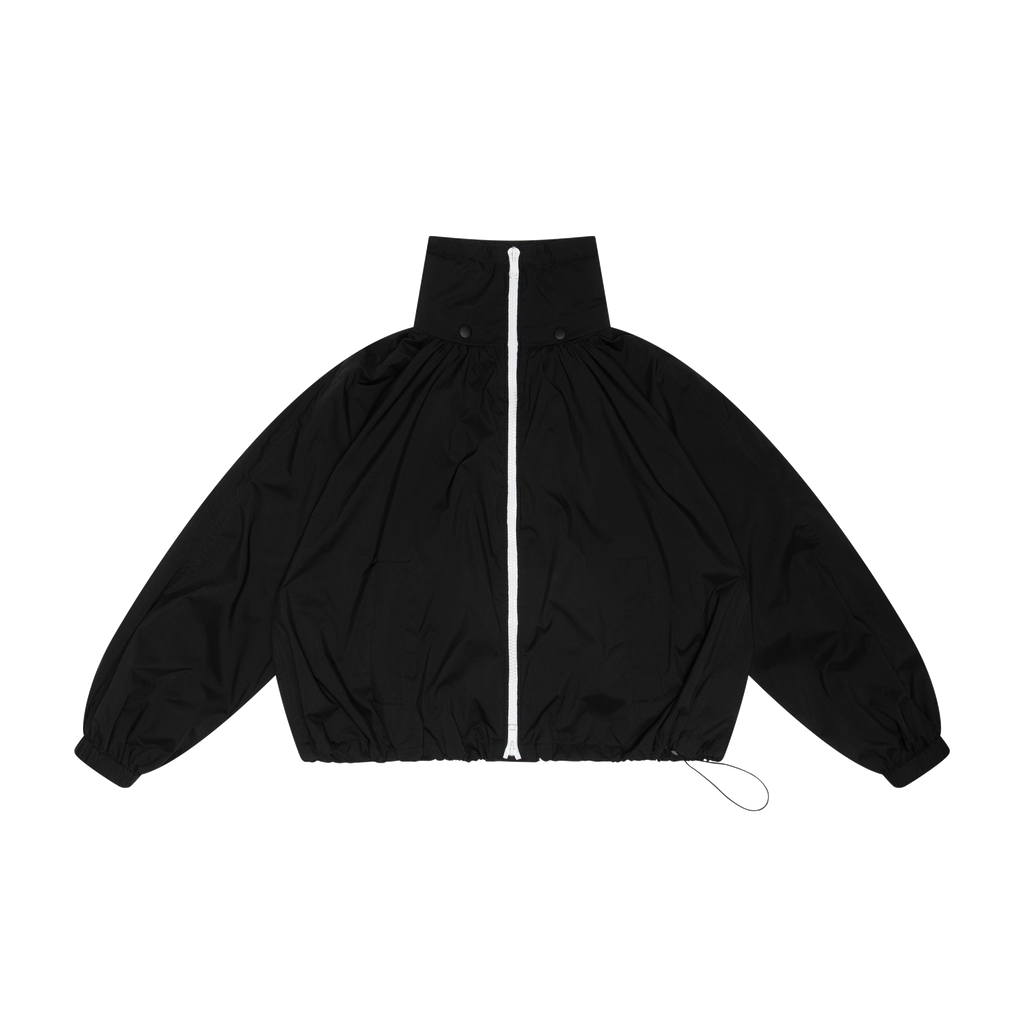 Givenchy Black Bomber Jacket features front zip closure, elasticated waistband with drawstring, elasticated cuffs, funnel neck, 2 side pockets, and raglan sleeves.