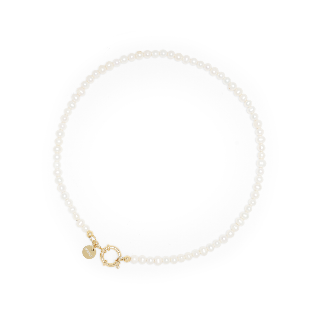 Handcrafted necklace in 18k gold-plated stainless steel. Freshwater pearls at length. Spring-ring fastening. Made in Los Angeles, CA.