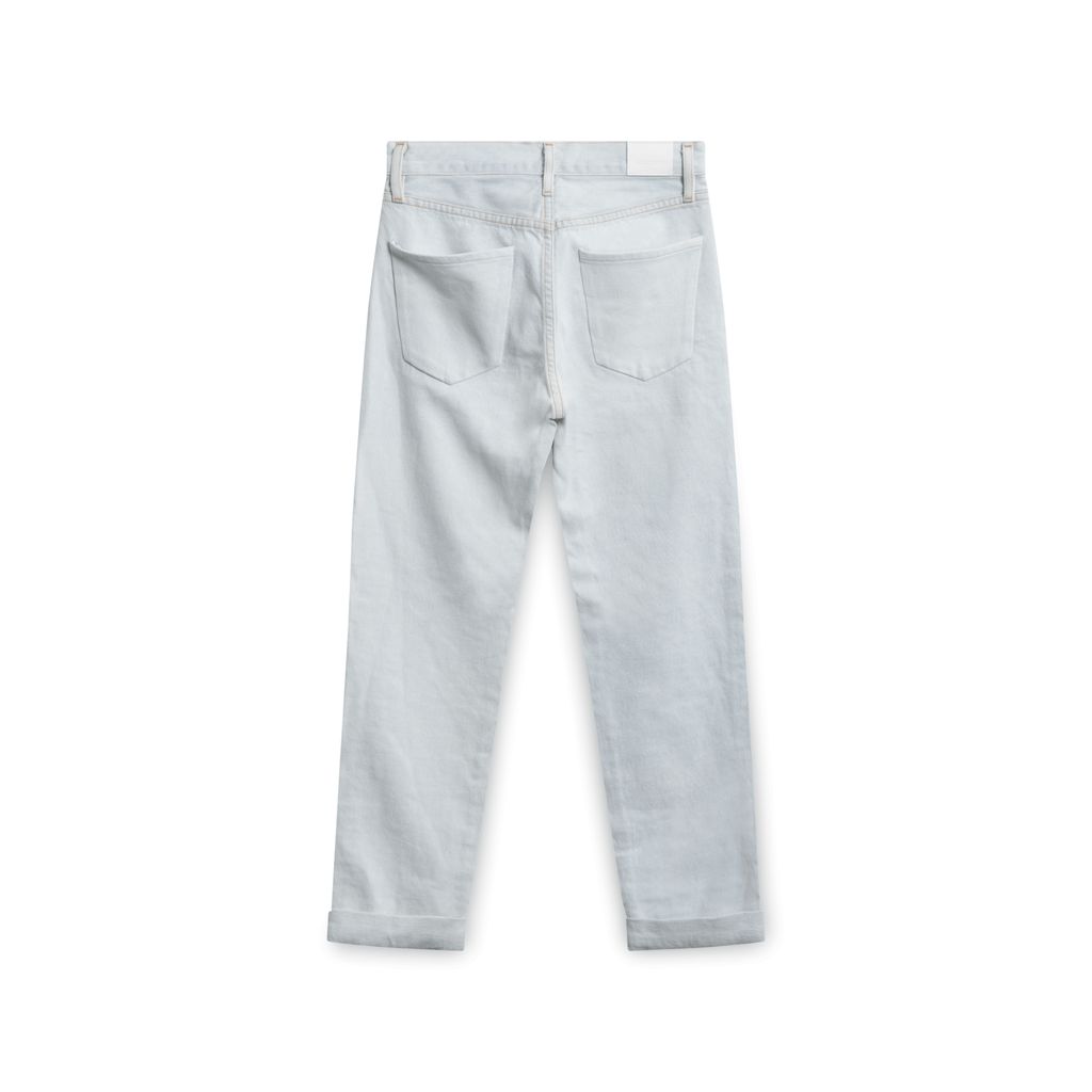 Goldsign Denim Jeans in Light Wash feature gold trim, silver hardware, and dual pockets at the front and back.