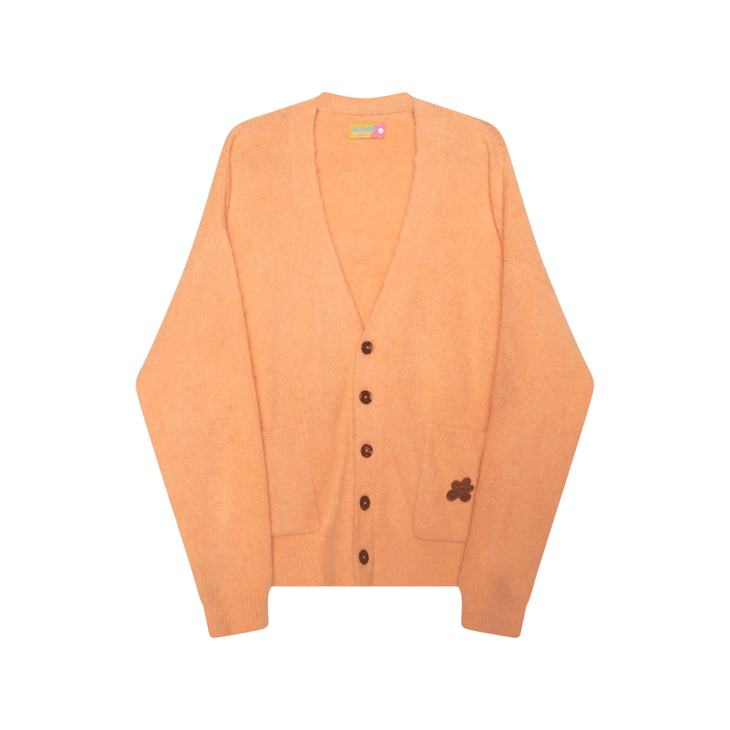 Golf le Fleur* Mohair Cardigan features front button closure, two front pockets, and leather embroidered patch on the left pocket.