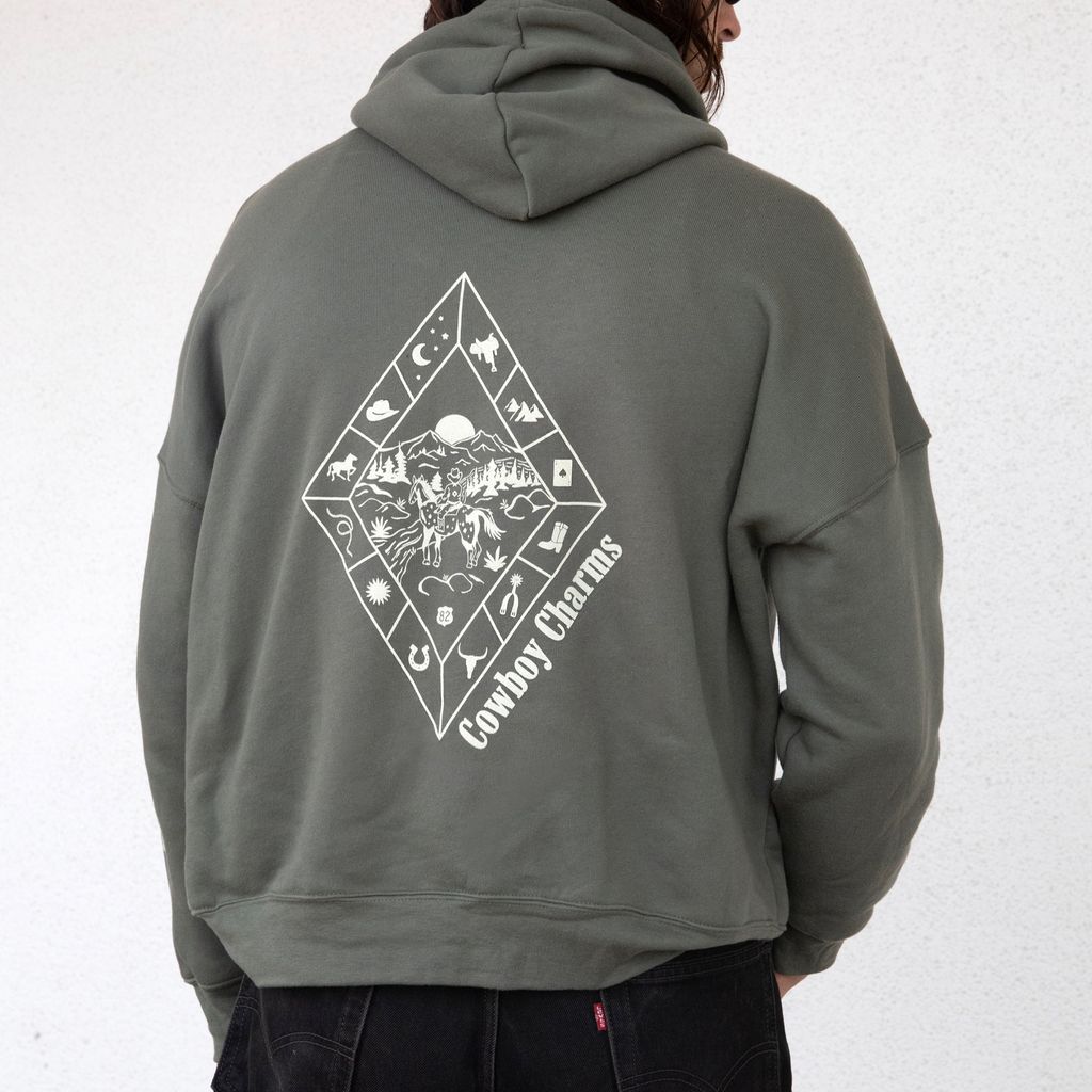 Features 12 symbols of the west that are known to bring good luck and protection to its owners. 100% cotton.