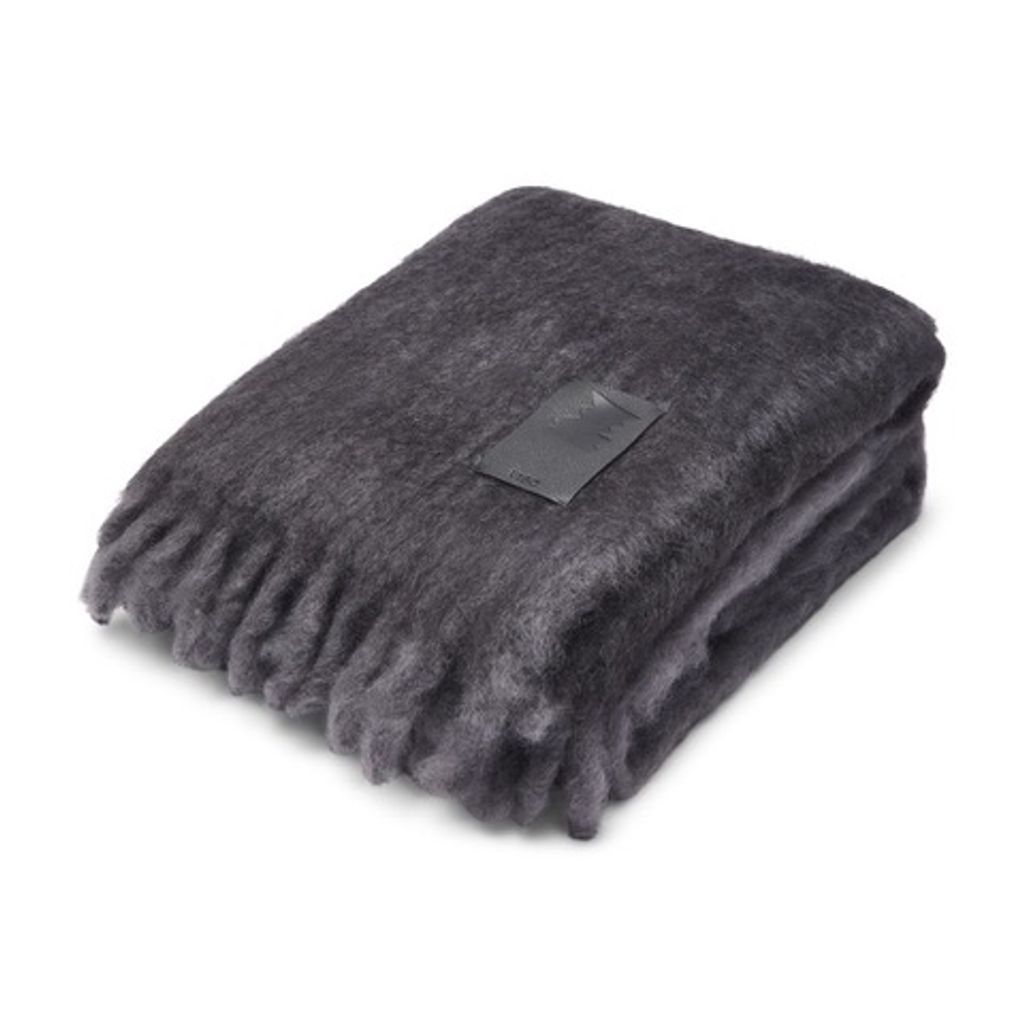 Our signature two-toned leather stitched blanket returns, by popular demand, in this new elevated slate grey and black colorway. Crafted in Spain through an artisanal weaving process that honors a tradition dating back to the 15th century, this piece reflects the finest craftsmanship. Hand-woven from the most exquisite mohair. Stitched across with black leather. Finished with a twist fringe detail.