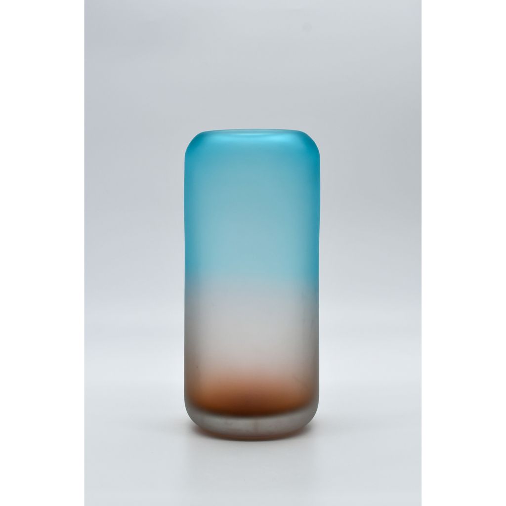 The Gradienti collection of mouth-blown glass vases is inspired by the every-changing colors of the sky. Using the sfumato technique, each vase features subtle transitions between soft hues, with the blending process sometimes creating a perfectly smooth shift or a clear line making every piece unique. Two molten glass colors are combined, dipped in a thin layer of transparent glass, and mouth-blown into the final shape. After cooling, the vase is sandblasted and waxed for a frosted, satin finish. The result is a striking, one-of-a-kind piece that reflects exceptional craftsmanship.