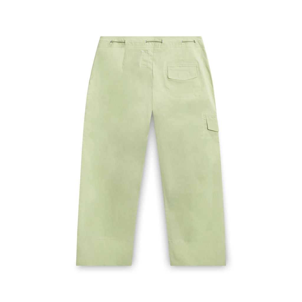 Light green cargo pants with a hook and zipper enclosure, and adjustable ties at the waist. Pants feature two pockets at the side waist, and one on the left leg. A stylized print of Paris Hilton is featured on the right leg, and the text "Generic Punk" is also featured at the left leg.
