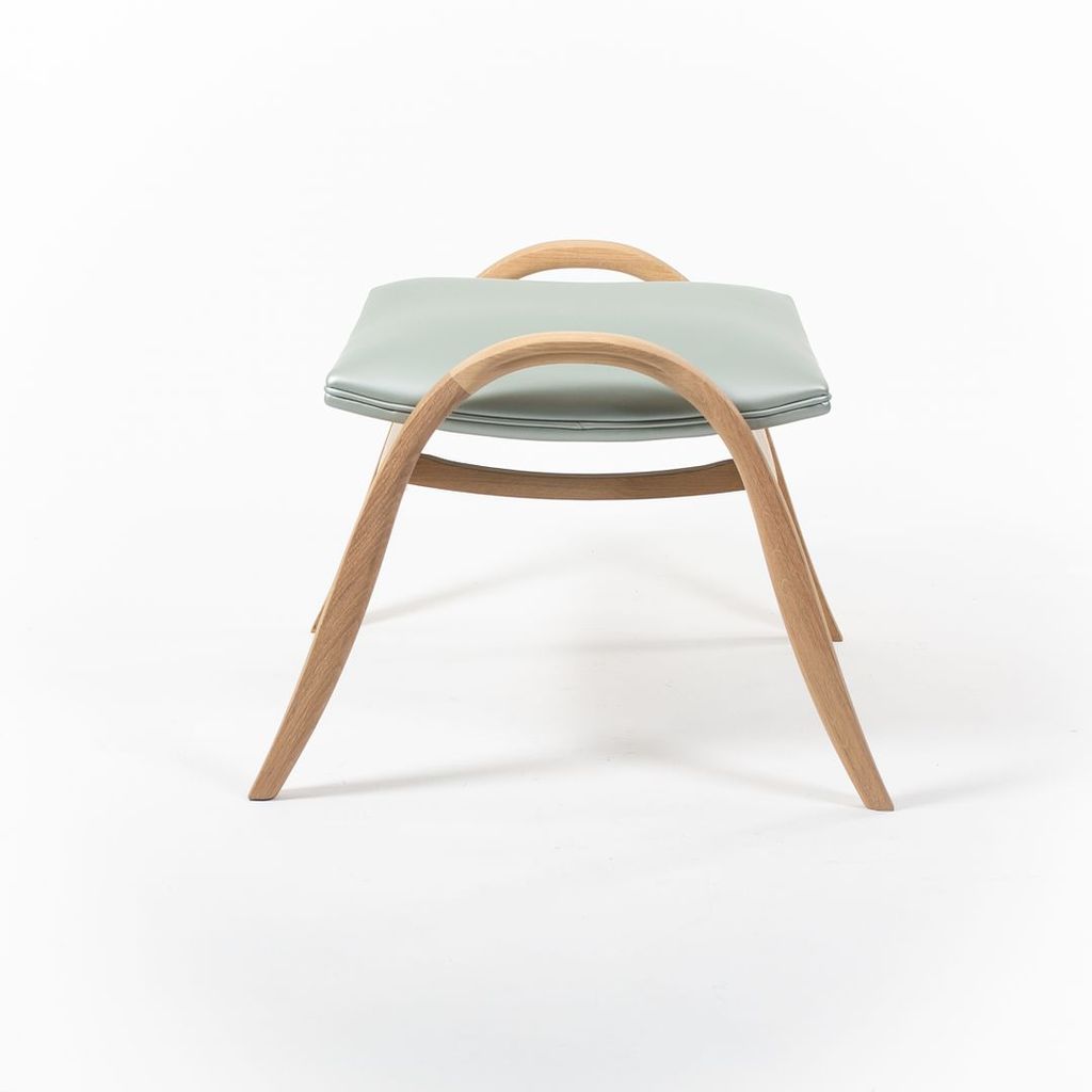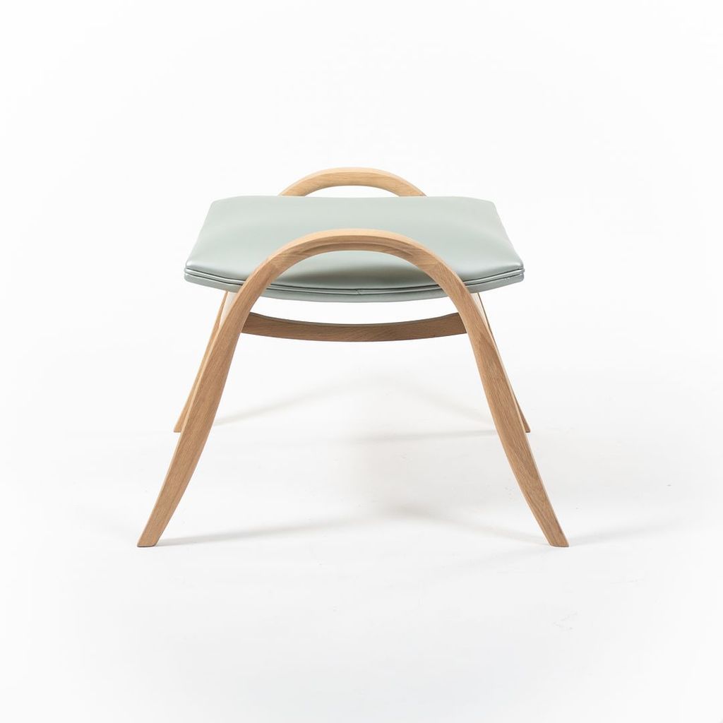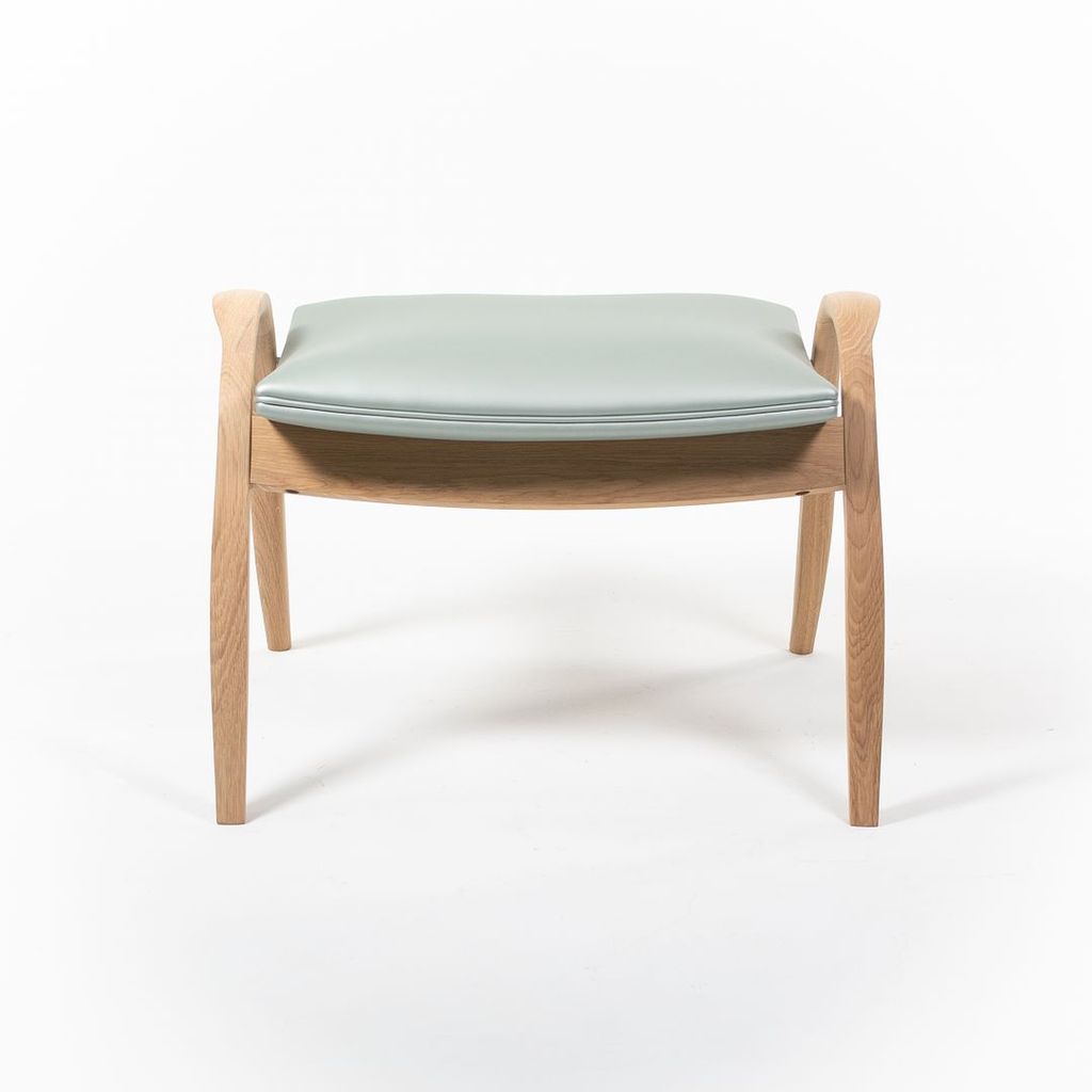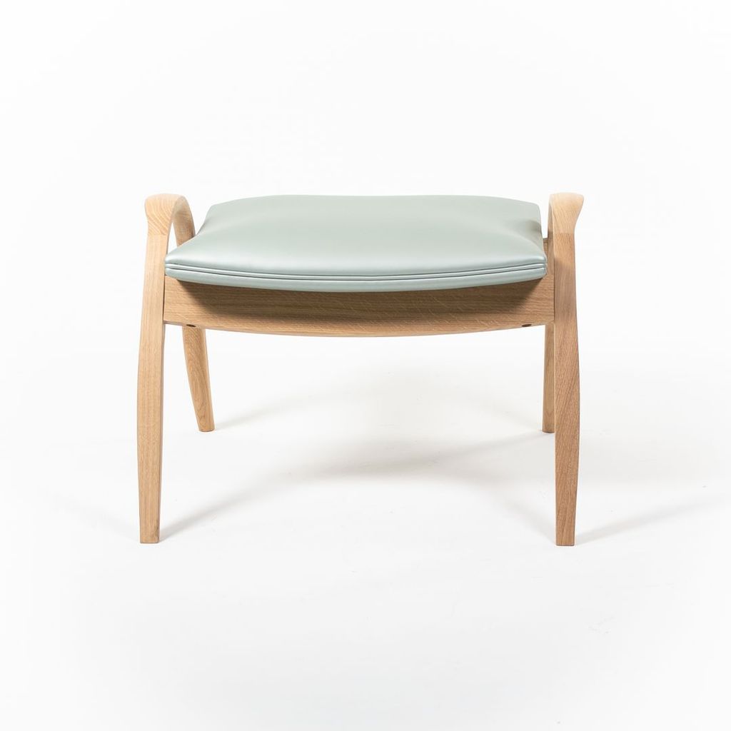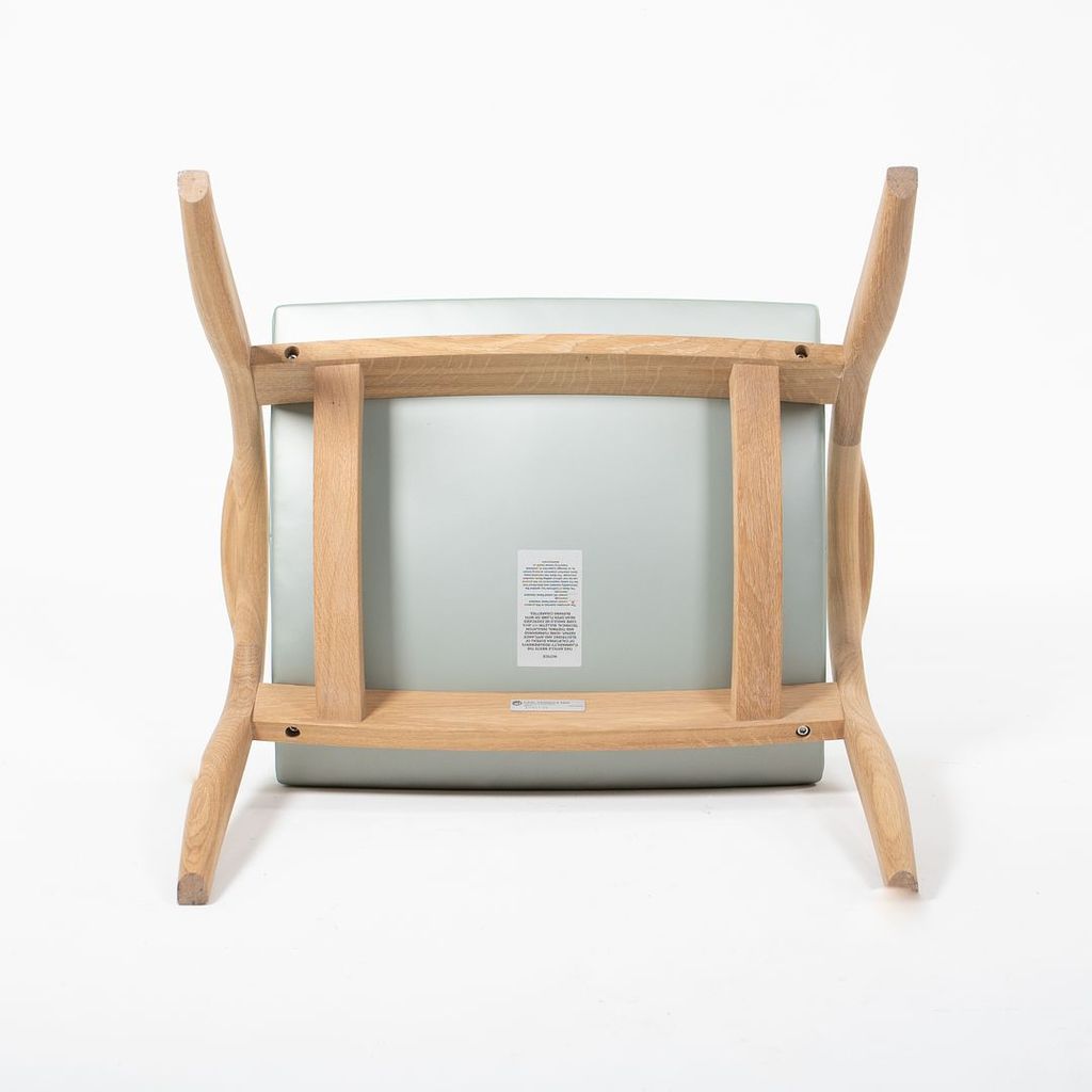 Listed for sale is an FH430 Signature Footstool with an oiled solid oak frame and a light (minty) green leather cushion. The footstool, designed by Frits Henningsen and produced by Carl Hansen & Son in Denmark, was produced circa 2021 and is guaranteed as authentic. Condition is excellent with some minimal wear. See photos. The stool came directly from Carl Hansen and was likely never used in a home or office setting. The leather was also a custom ordered material (COL or Customers Own Leather).