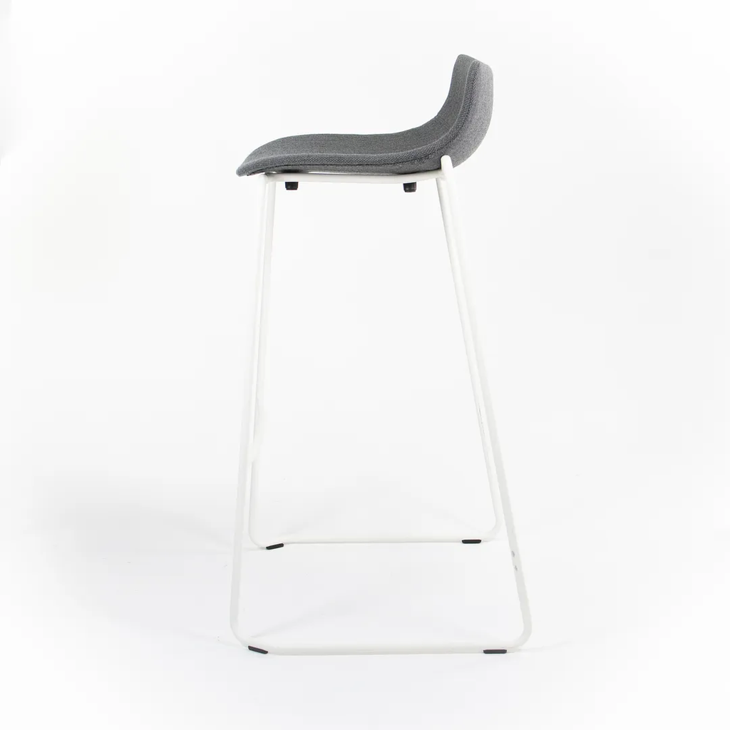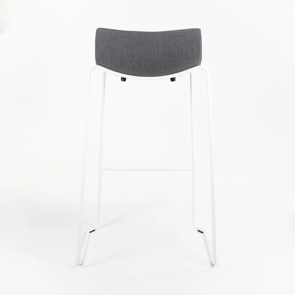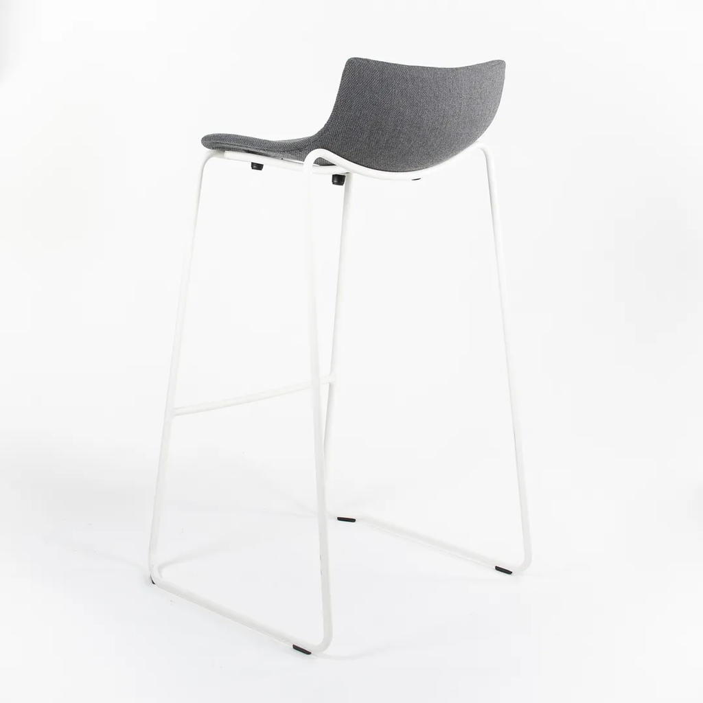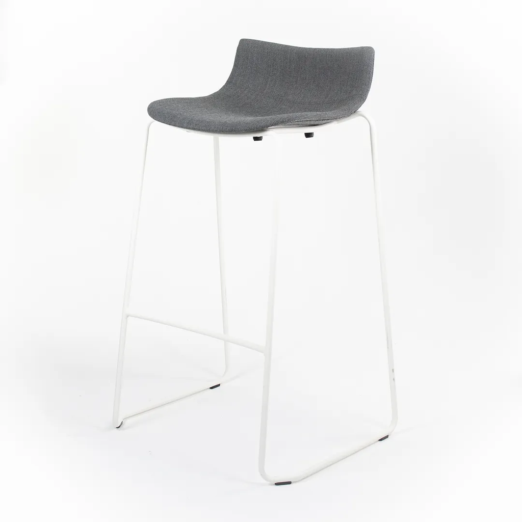 This is a BA004F Preludia Bar Stool, designed by Brad Ascalon and produced by Carl Hansen & Son in Denmark. The stool is made with a white powder-coated steel frame and a gray Fjord 17 fabric seat. The stool dates circa 2021 and is guaranteed as authentic. Condition is excellent with only minimal wear. See photos. This chair came directly from Carl Hansen. It was likely never used in a home or office setting but may have been a display model within their showroom.