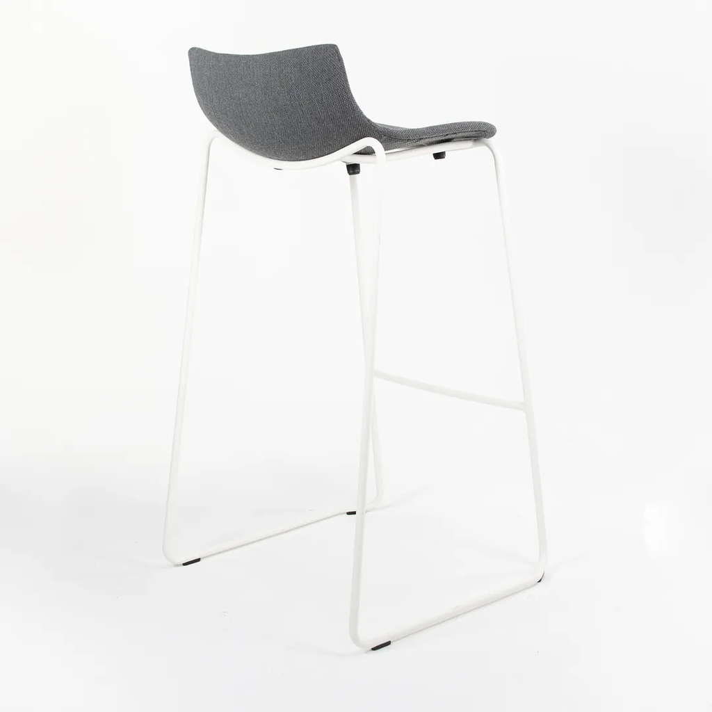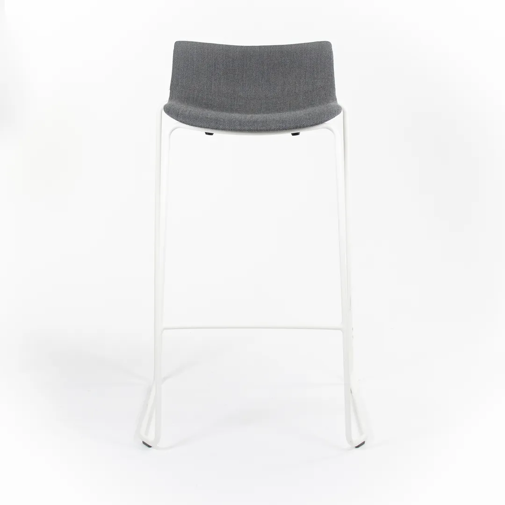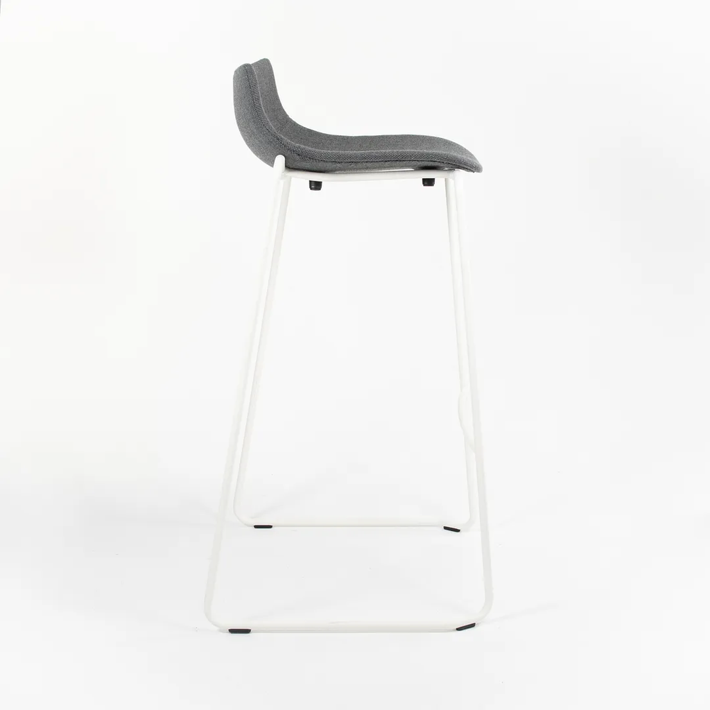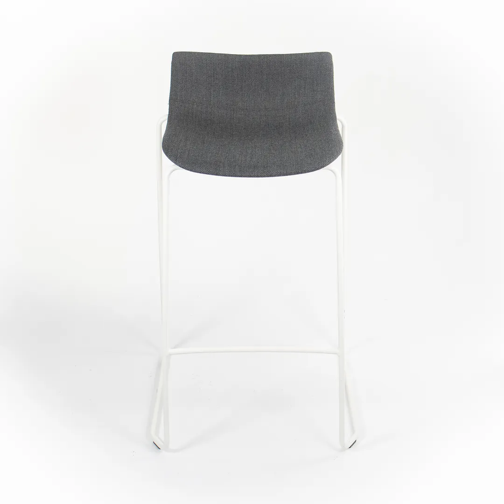 This is a BA004F Preludia Bar Stool, designed by Brad Ascalon and produced by Carl Hansen & Son in Denmark. The stool is made with a white powder-coated steel frame and a gray Fjord 17 fabric seat. The stool dates circa 2021 and is guaranteed as authentic. Condition is excellent with only minimal wear. See photos. This chair came directly from Carl Hansen. It was likely never used in a home or office setting but may have been a display model within their showroom.