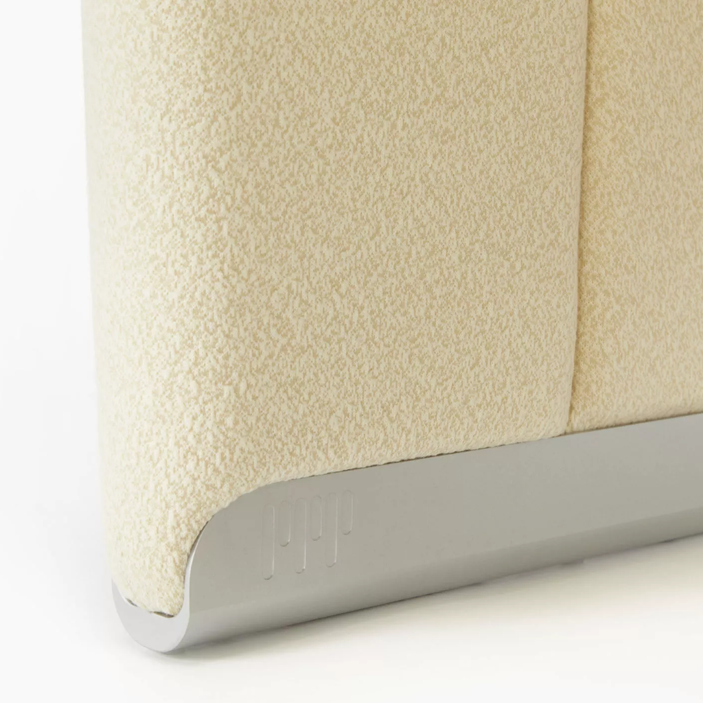The soft and elegant shape highlights its function while accentuating comfort and aesthetics. As a single piece or in a pair, it brings a sculptural dimension to a refined room matching easily all kind of atmosphere. As comfortable as it is functional, its compact size allows the Groovy to find its place in a bedroom as well as in the living room. The Groovy consists of a wide, fully padded seat and backrest that provide good back support and are connected by aluminum glides.