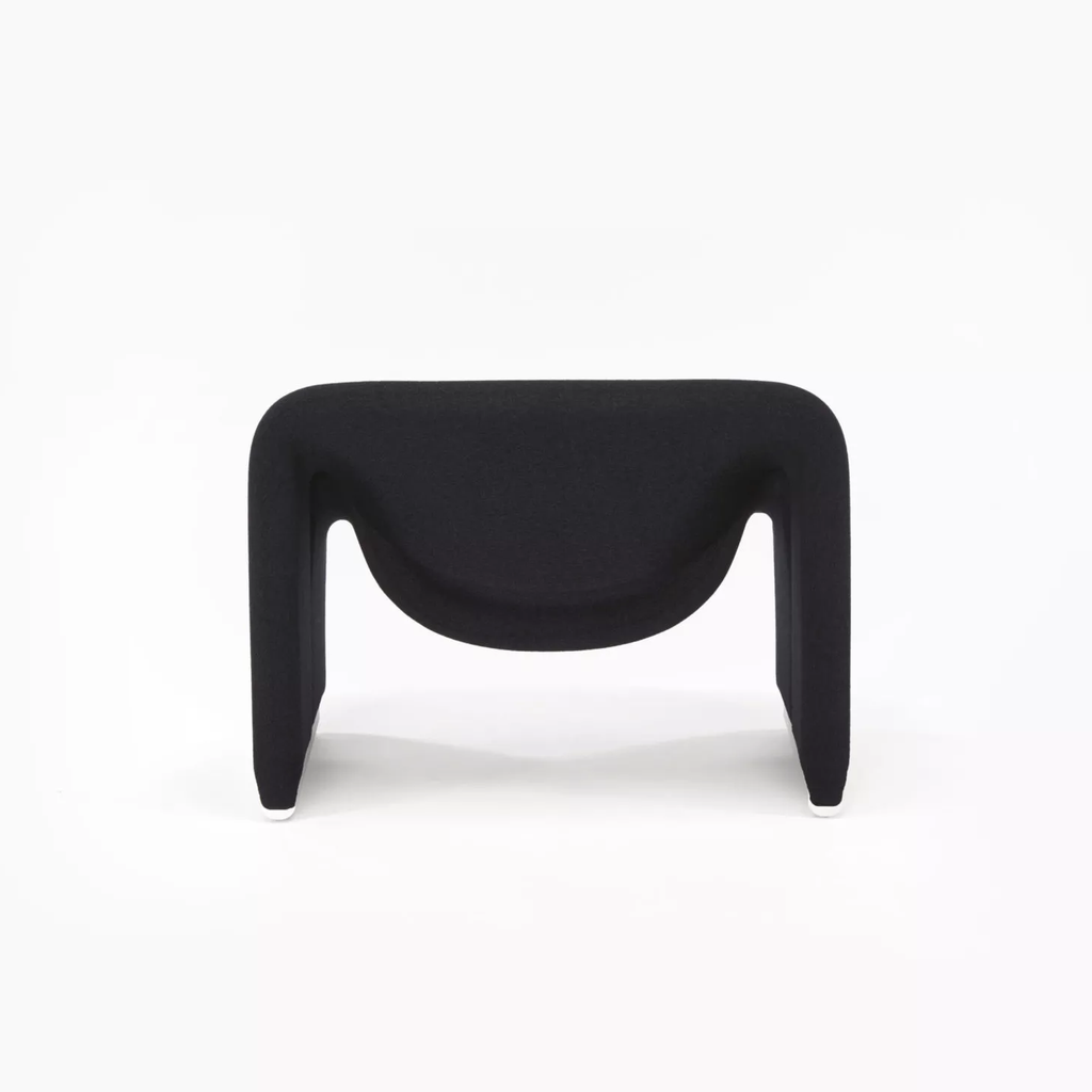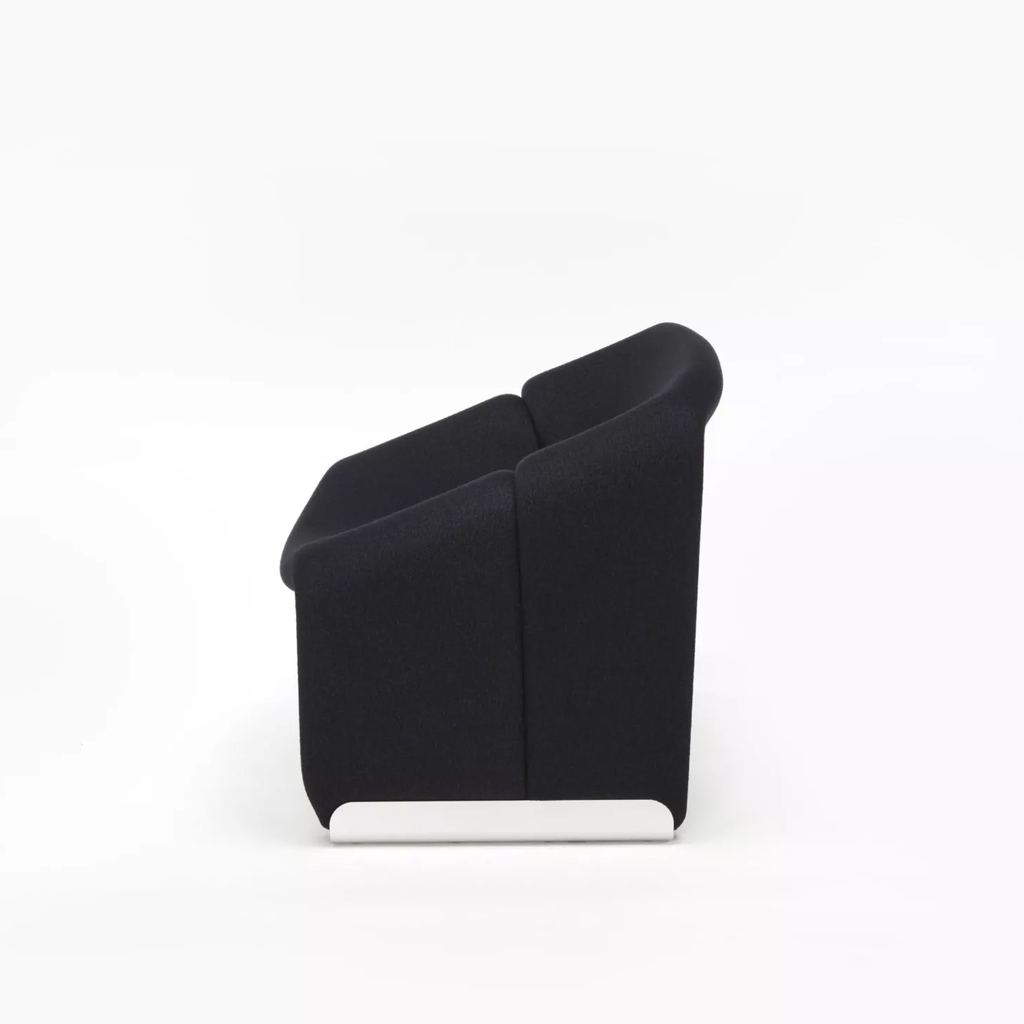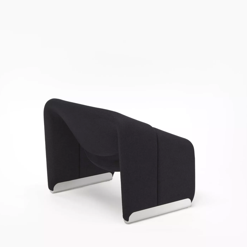 The Groovy Armchair in Black by Pierre Paulin is a classic. The soft and elegant shape highlights its function while accentuating comfort and aesthetics. As a single piece or in a pair, it brings a sculptural dimension to a refined room matching easily all kind of atmosphere. As comfortable as it is functional, its compact size allows the Groovy to find its place in a bedroom as well as in the living room. The Groovy consists of a wide, fully padded seat and backrest that provide good back support and are connected by aluminum glides. In 1964 Pierre Paulin presented the F580 model, the first version of the Groovy armchair. This model is one of the great achievements of the period from 1958 to 1968 during which, inspired in particular by car industry, he used tubular structures covered with molded foam and stretch textile to gain lightness and strength while allowing industrialization. In the early 1970s, the F598 Groovy armchair took its final shape and enjoyed great success until the end of the edition. Paulin, Paulin, Paulin, in parallel with his collections of rare or never-before-published models, is now creating a new catalog devoted to the industrial icons of Pierre Paulin.