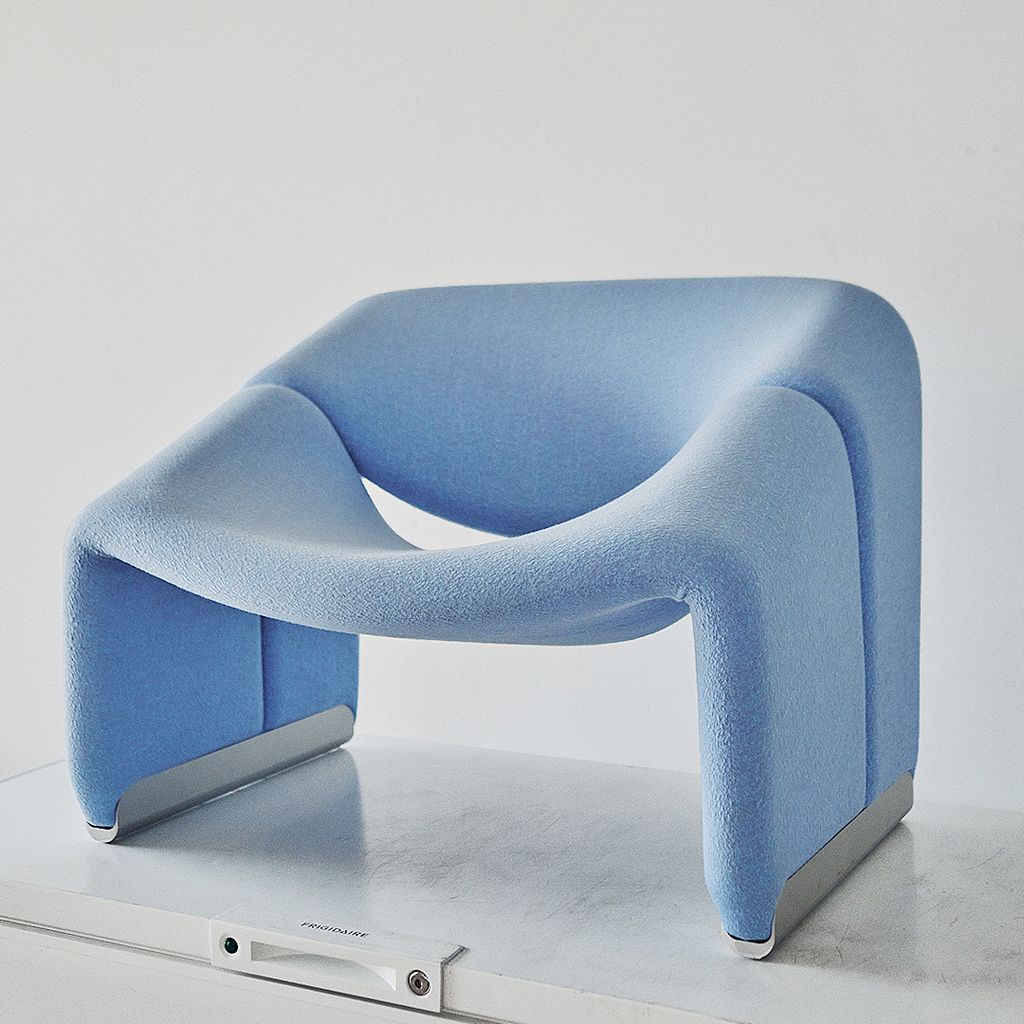 The Groovy armchair by Pierre Paulin is a classic. The 'Blue B' Streamknit fabric was designed to emulate the original 1964 production and nods to our brand color. We're thrilled to announce this limited edition chair is available for purchase in-person & on Basic.Space.