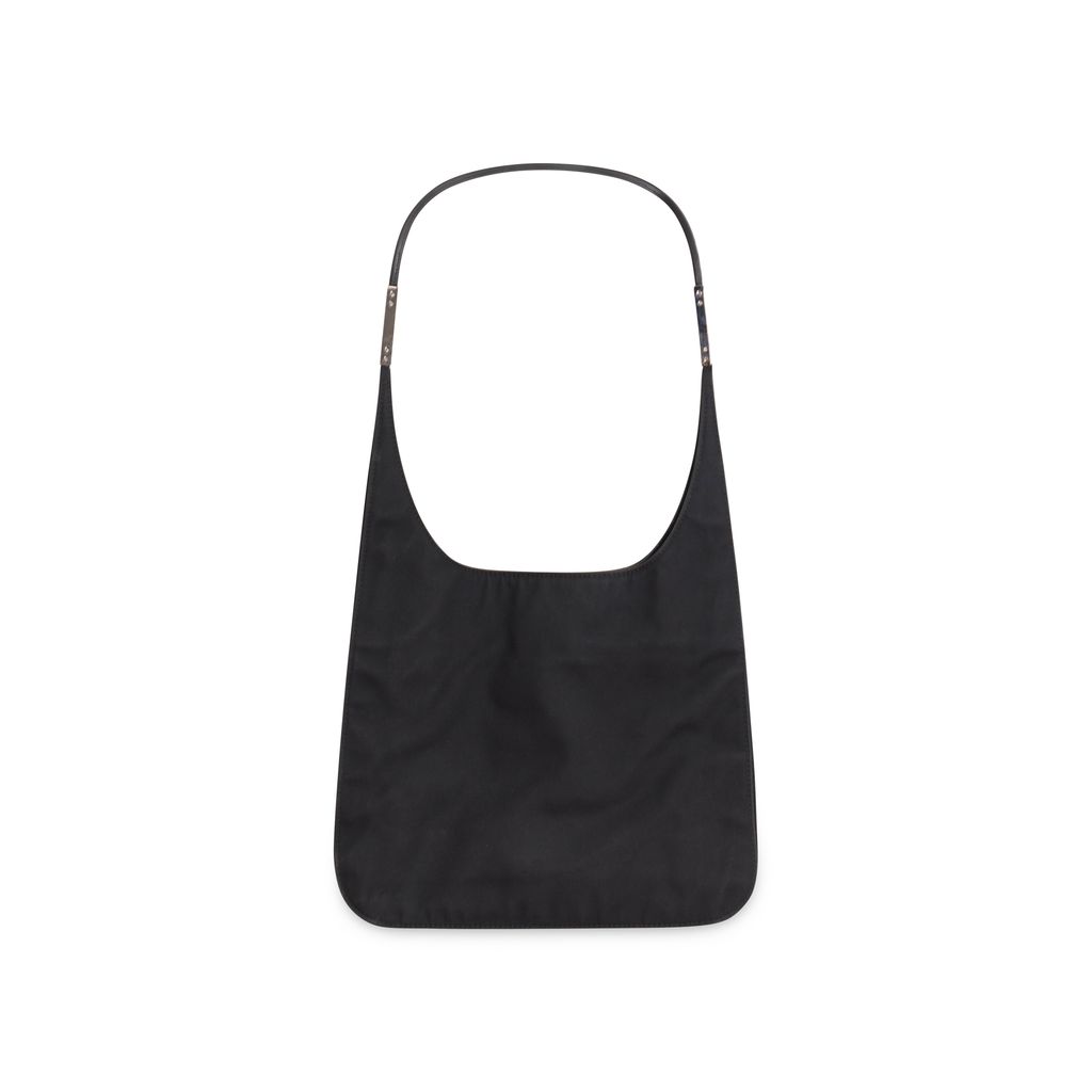 Gucci Canvas Hobo Shoulder Bag features silver logo hardware on strap, button closure, zipper pocket on inside, logo lining.
