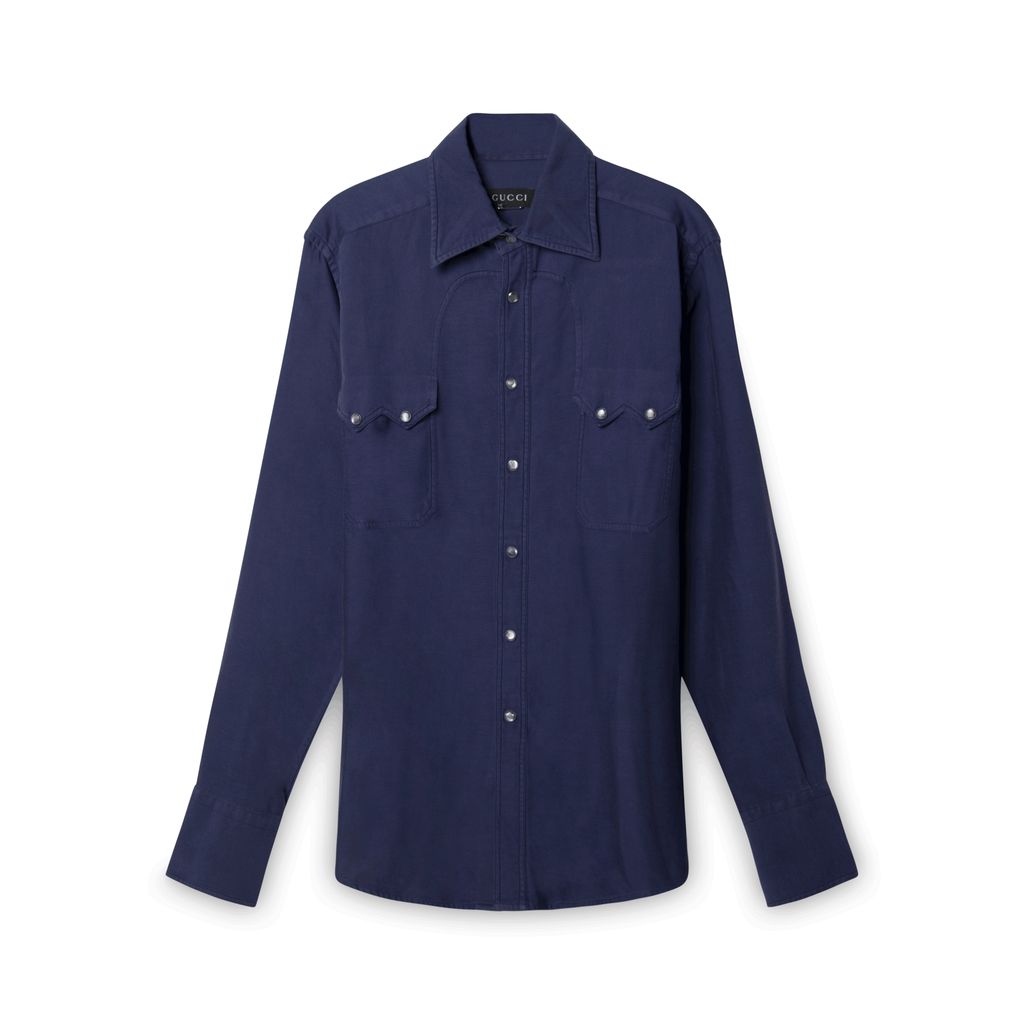 Vintage Gucci shirt from around 2004 when Tom Ford was still designing for the house. Snap buttons with Gucci branding on each.