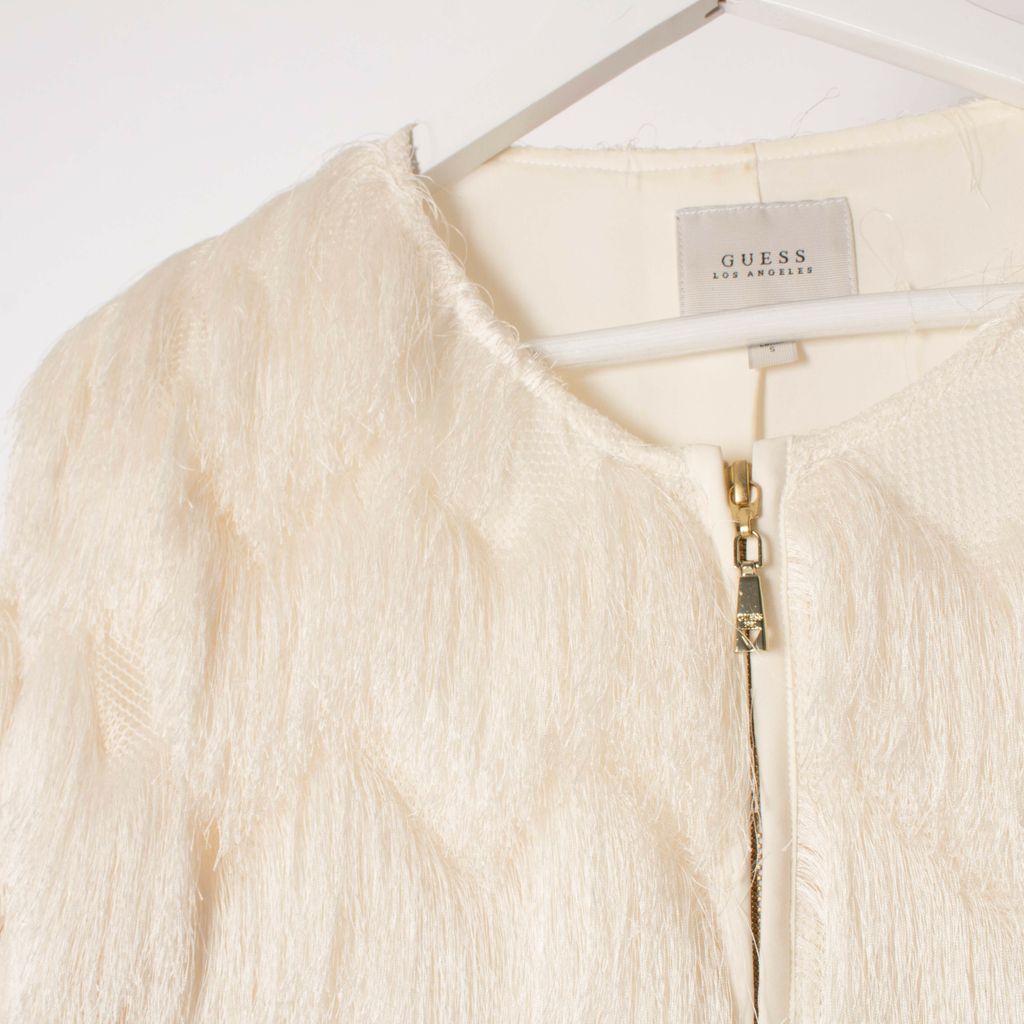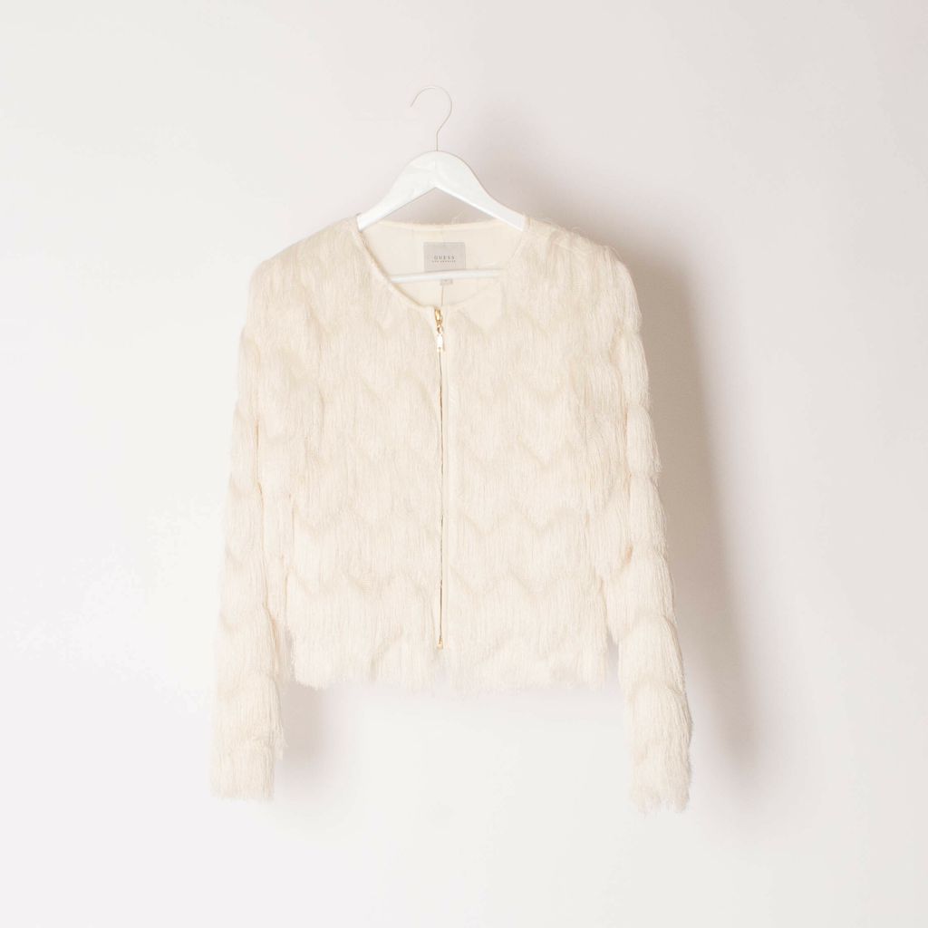 Strut your stuff in the wind catching, flowing fringe number from Guess. Lightweight lining with a full zip closure makes this piece both fashionable and functional.