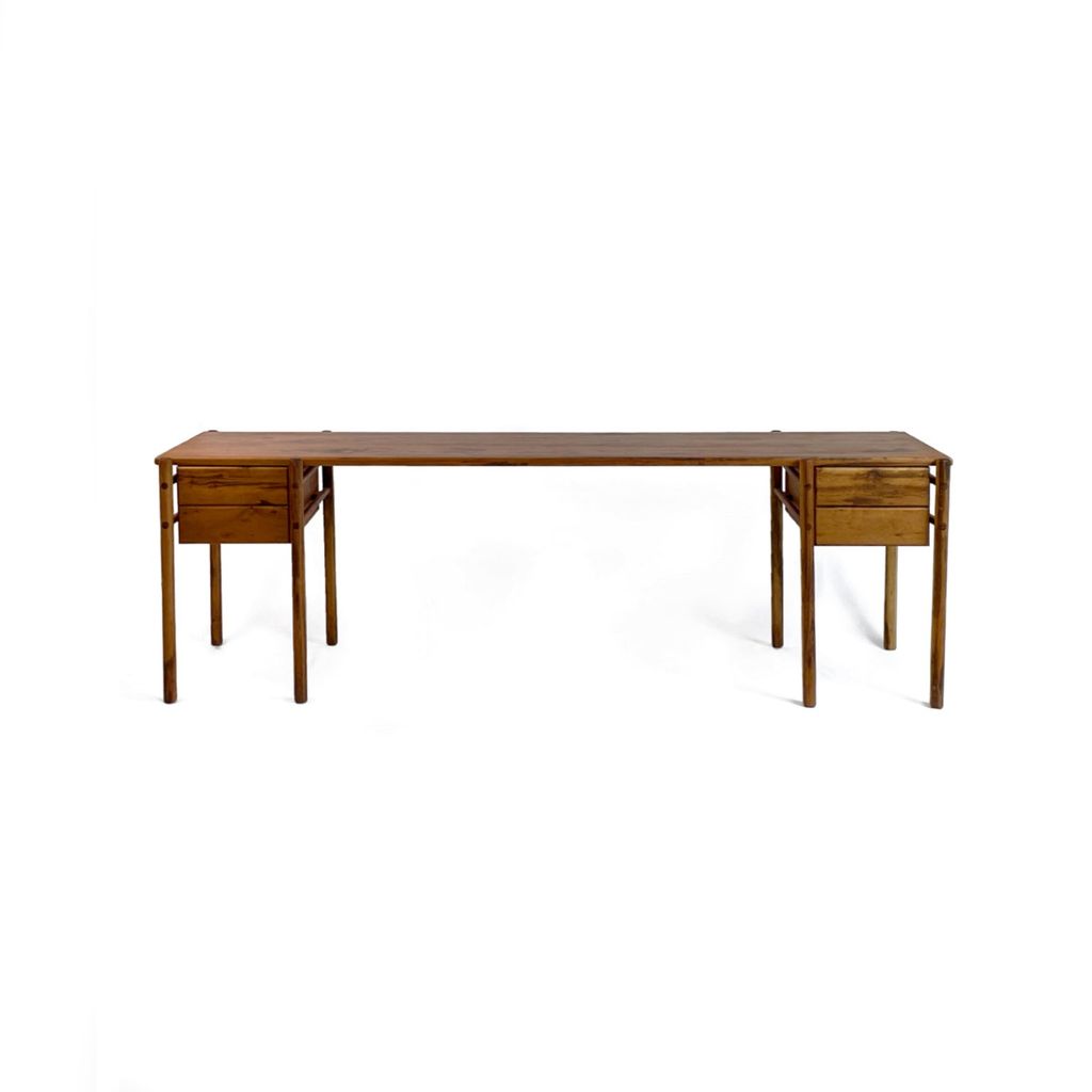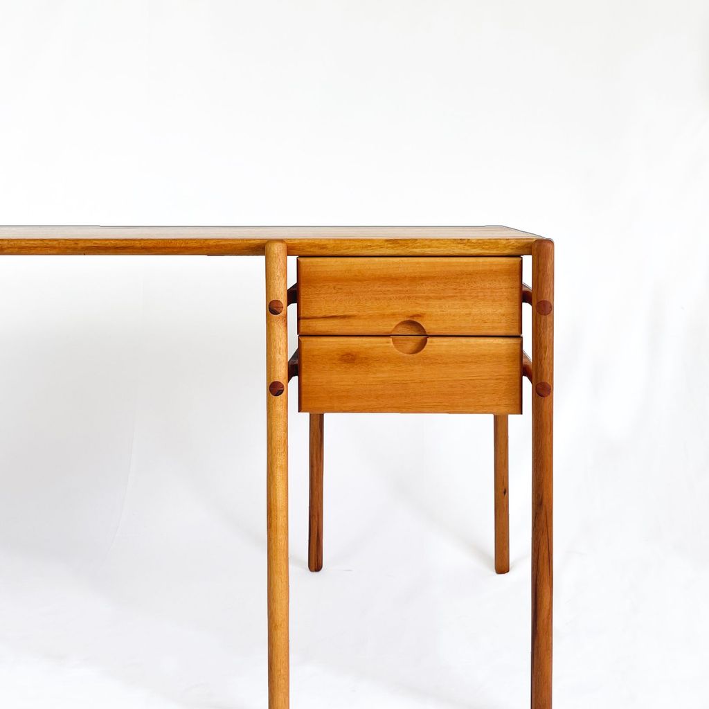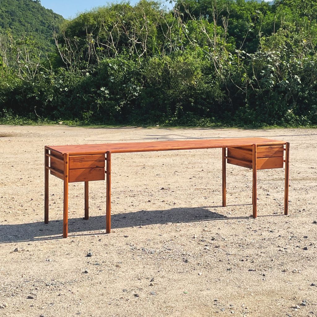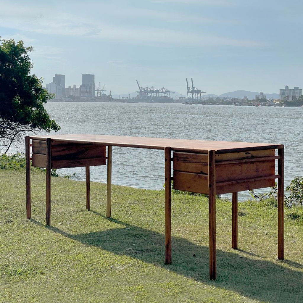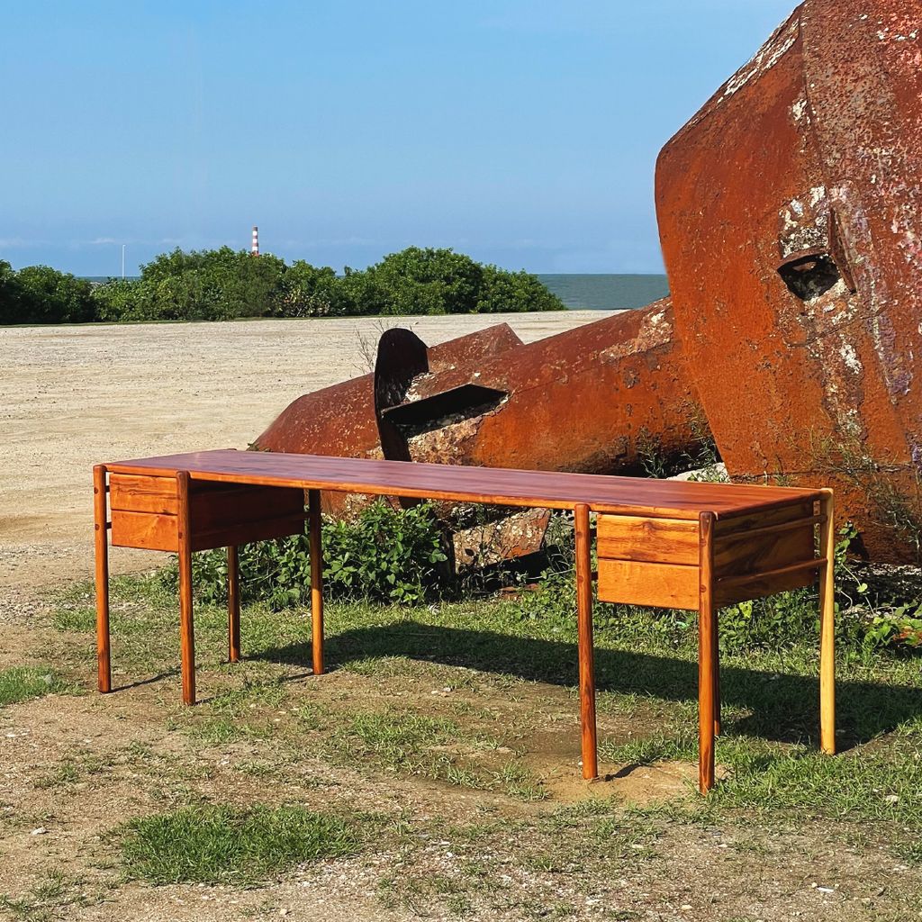 Designed to combine versatility and ample workspace, this modular desk allows for various configurations to adapt to the client’s needs. It can be composed of up to two modules, each with two drawers. The modules fit horizontally onto the legs, creating a sense of lightness and making it a standout piece in the office.