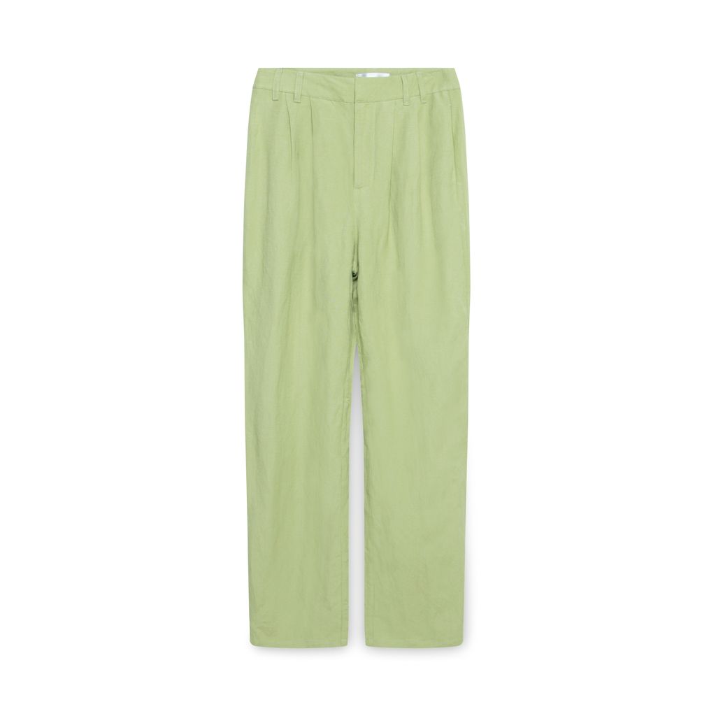 Guizio Light Green Linen Blend Pants feature side pockets and hidden clasp.