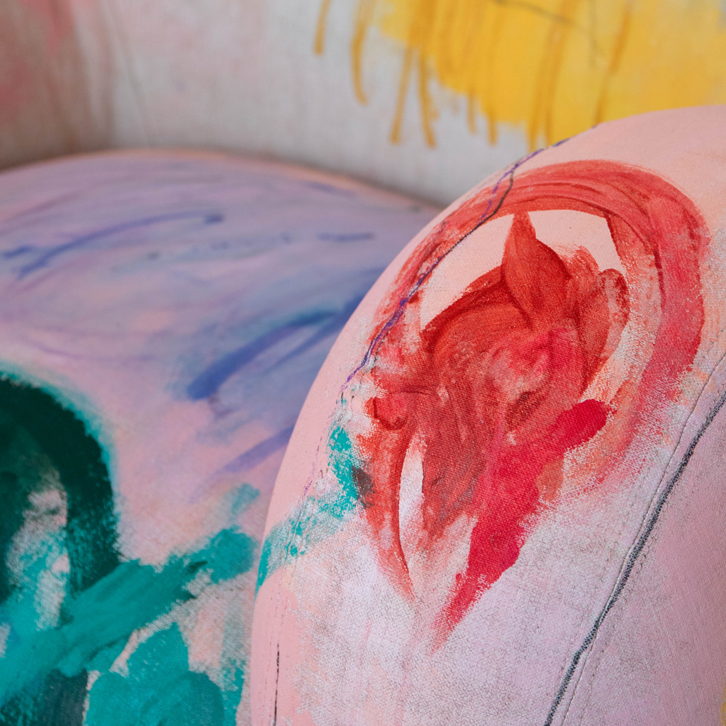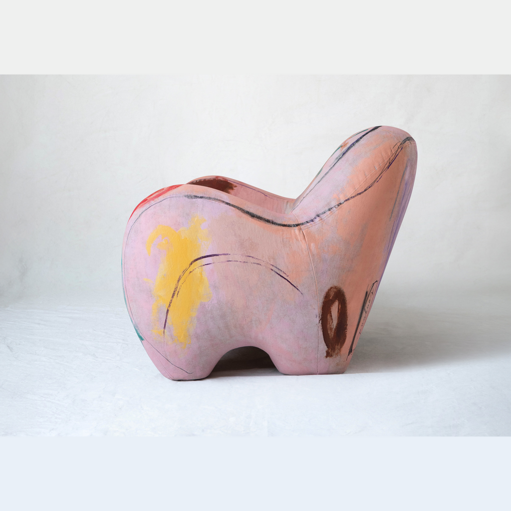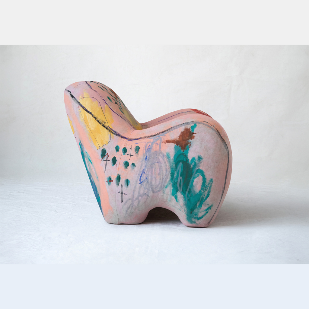 A cocoon of gesture and memory, the Gummy Armchair by Toogood transforms familiar upholstery into dream terrain. Each brushstroke across the surface reads like a thought left unfinished—a diary entry in pigment. Fully upholstered and hand-painted, these chairs are less about sitting and more about sensing: comfort as a medium of reverie.