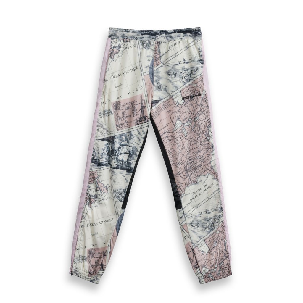 These map printed track pants from H2OFagerholt feature a relaxed fit with elastic waistband and cuff, drawstring waist ties, and size/back zip pockets. Brand new with tags.