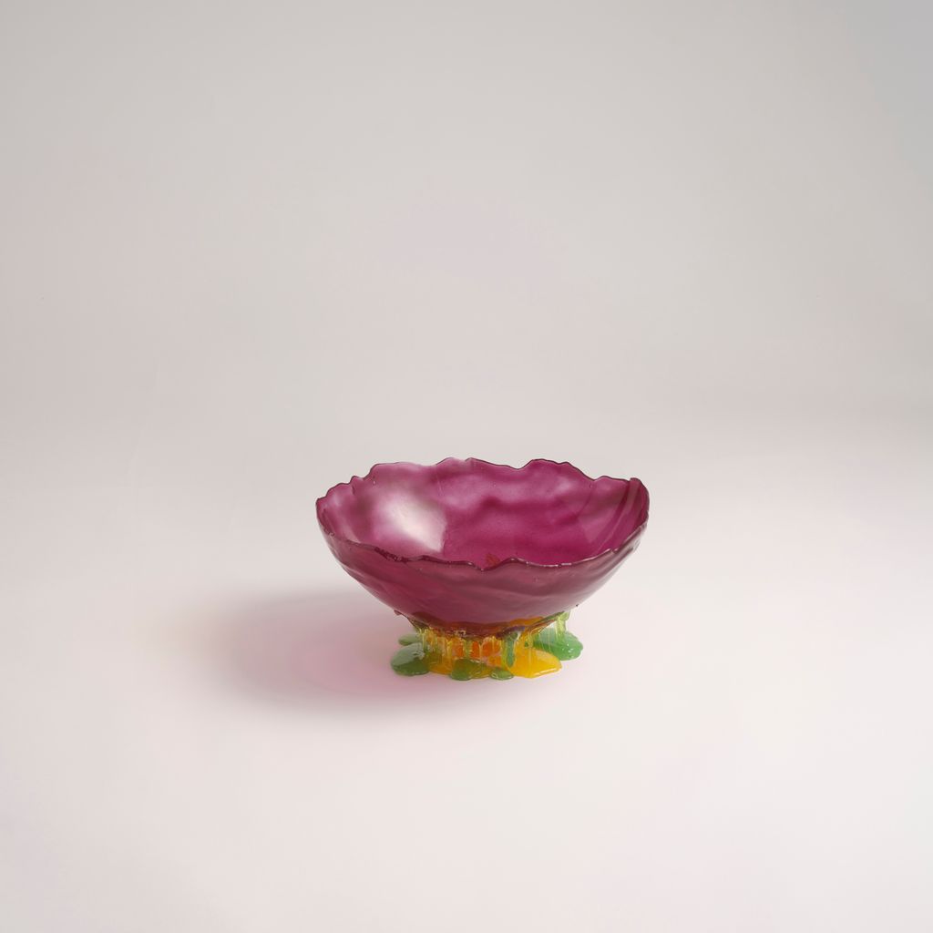 Among the most recognizable vases by Edizioni del Pesce, Half Ball comes in "small" and "large" sizes. The peculiarity of this vase, in addition to the unique brilliance of the colors, is the seemingly inexorable flow of resin, which elegantly forms the base. This structure seems to defy gravity and exalt experimentation, challenging the rules of traditional design.