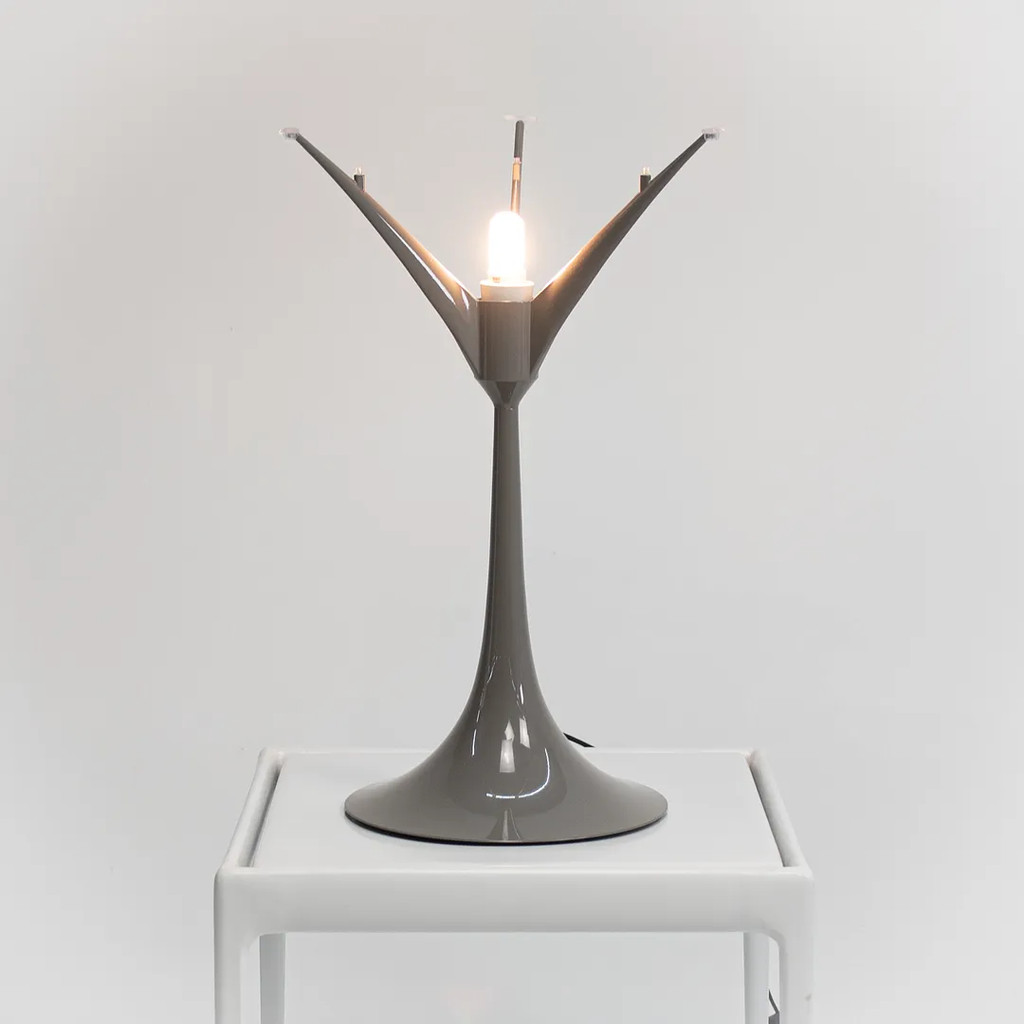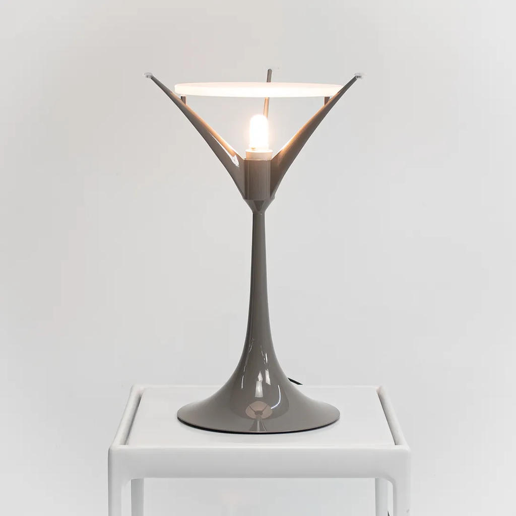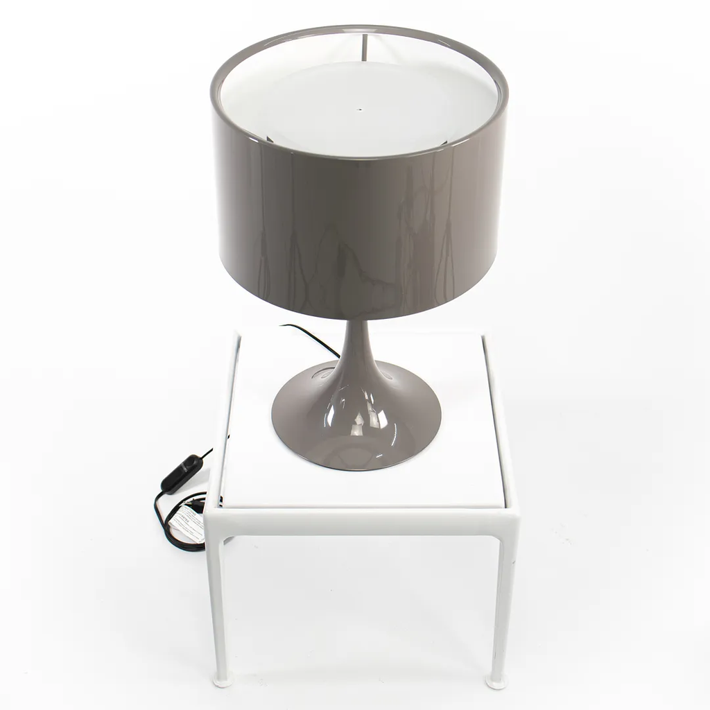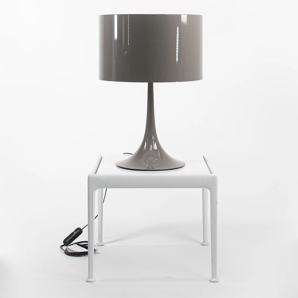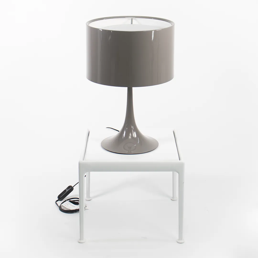 Listed for sale is a Spun Light T1 table lamp with a spun metal frame and aluminum diffuser. The lamp was designed by Sebastian Wrong, produced by Flos in Italy. It dates to circa 2020 and is guaranteed authentic. Condition is very good to excellent with minor wear from use. See photos.