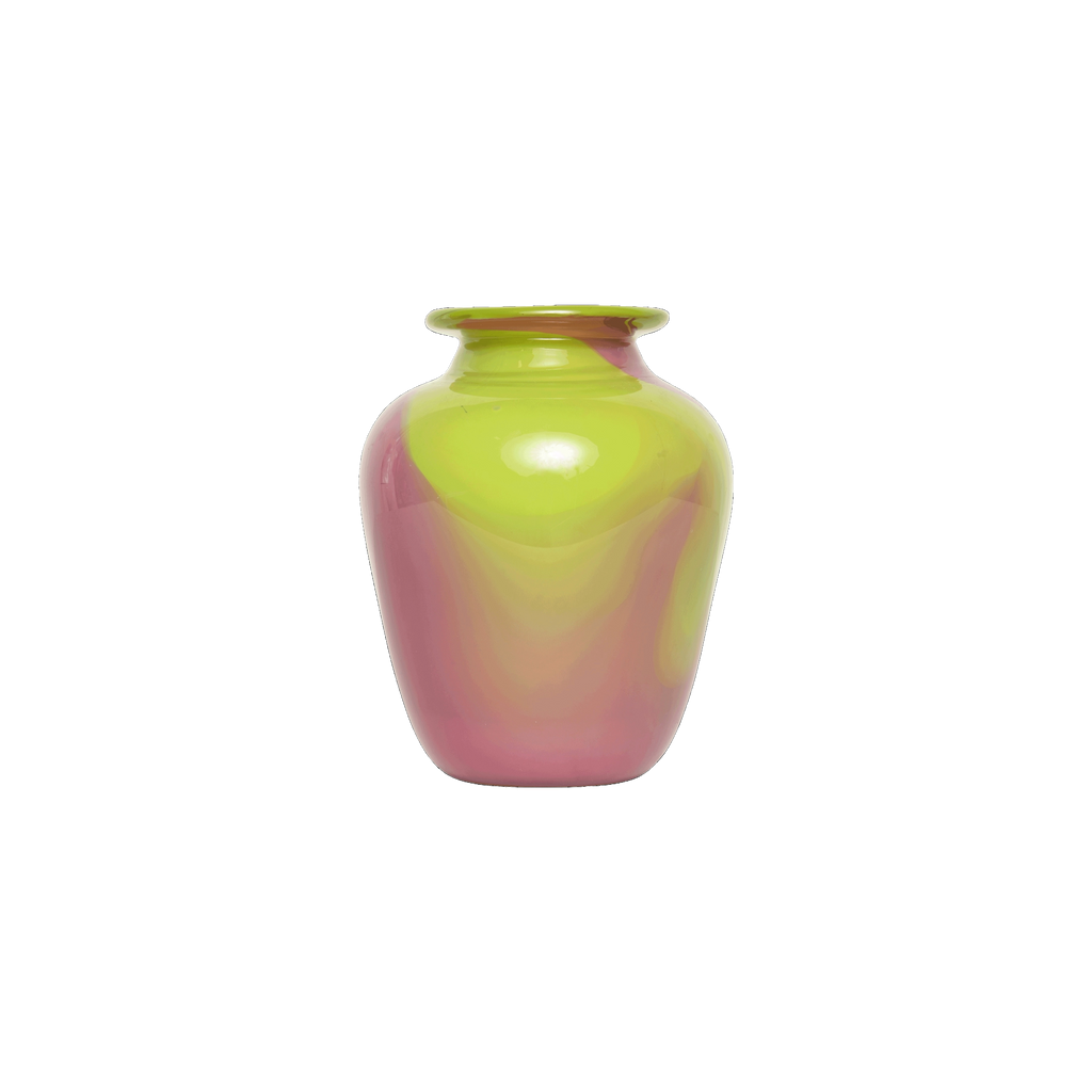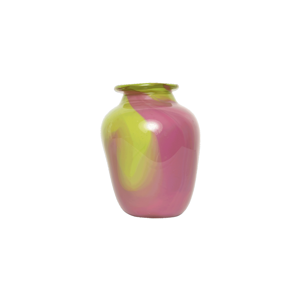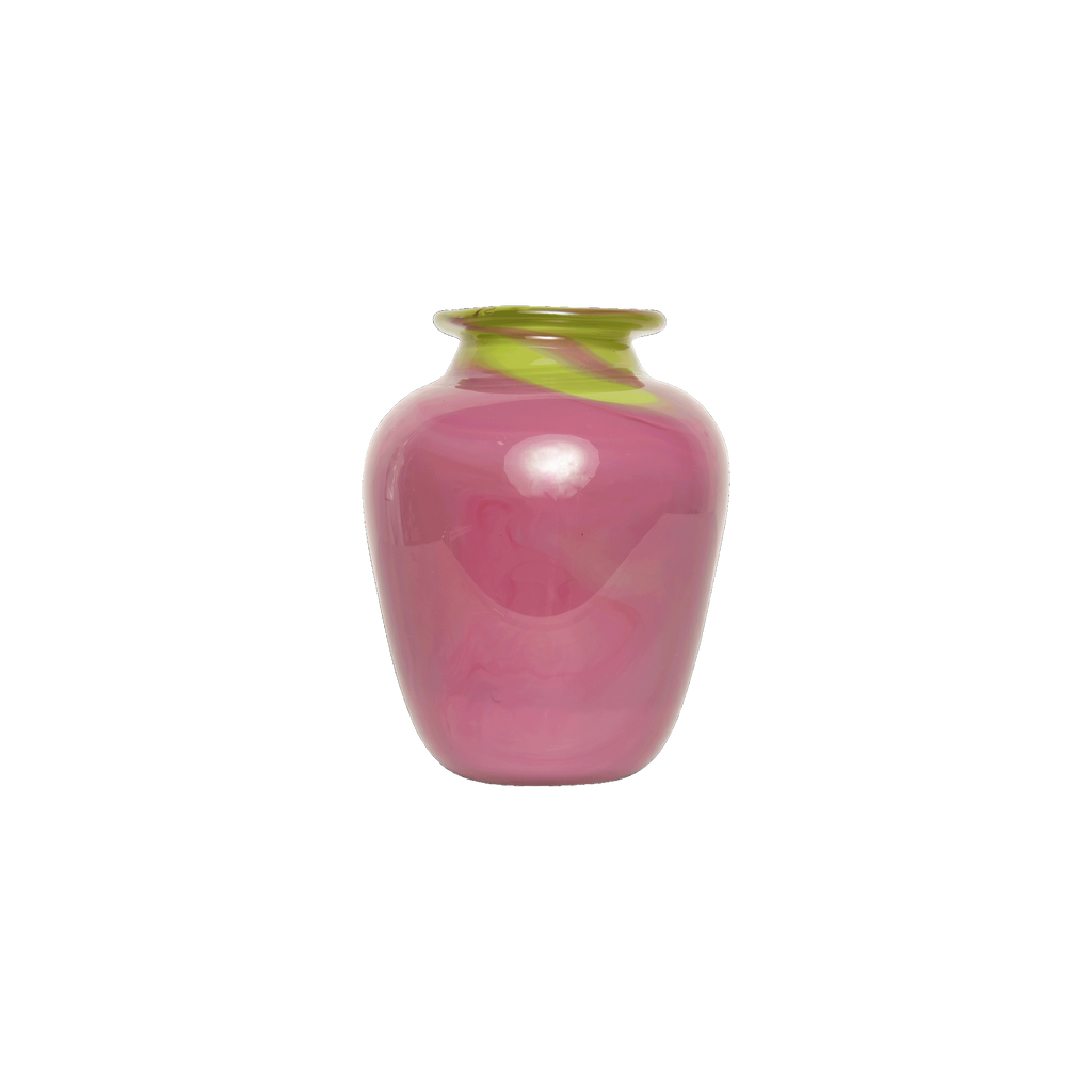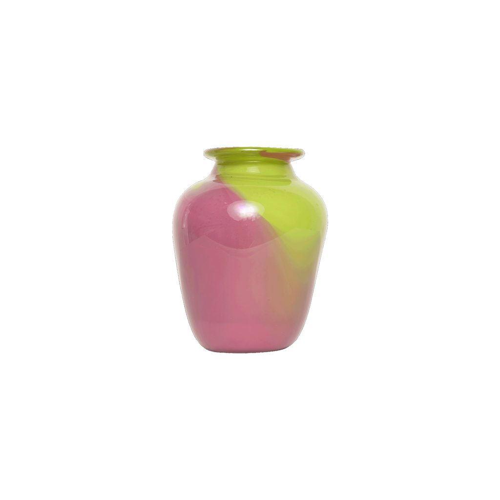 Hand Blown Glass Vase is a pink and green glass vase hand blown in Italy.