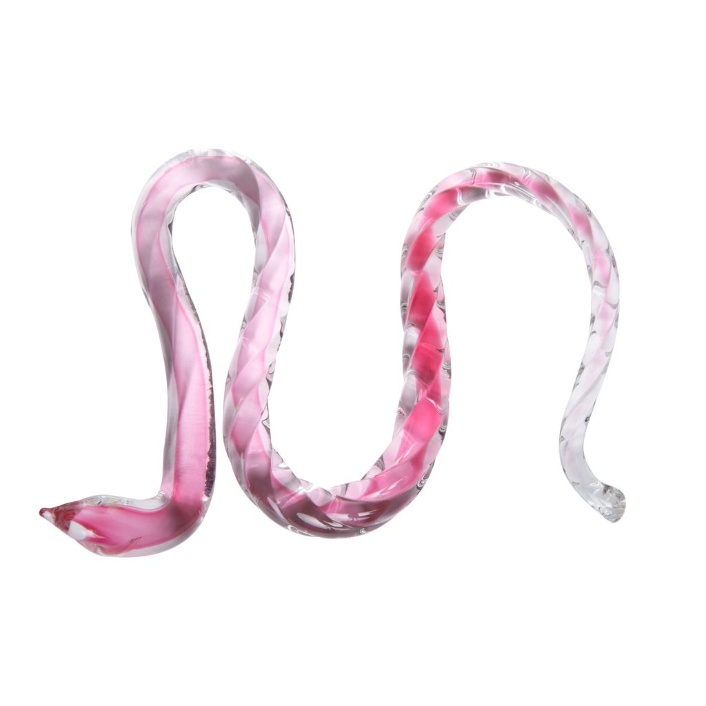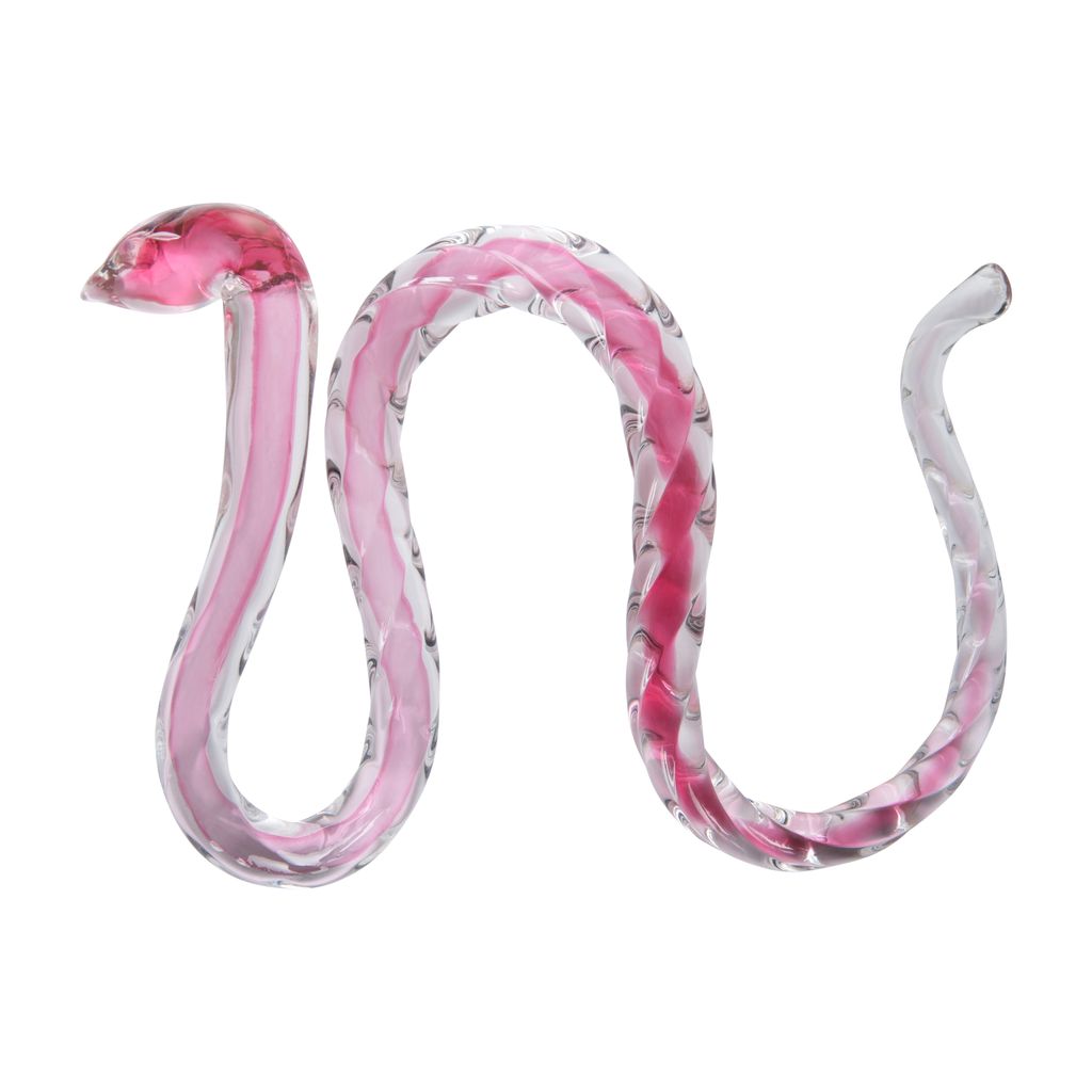 Hand-Blown Snake in Pink/Clear is a Basic.Space exclusive featuring slithering snake shape and detailing on pink/clear blown glass.