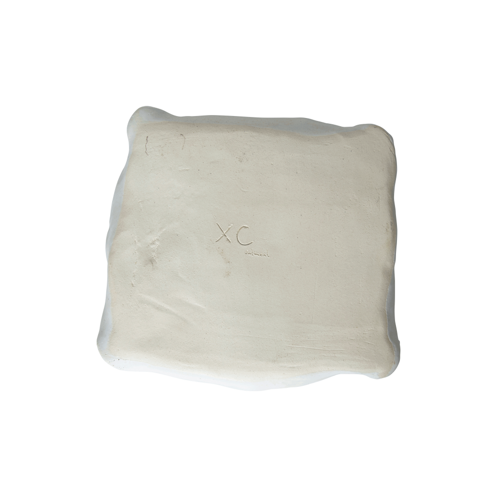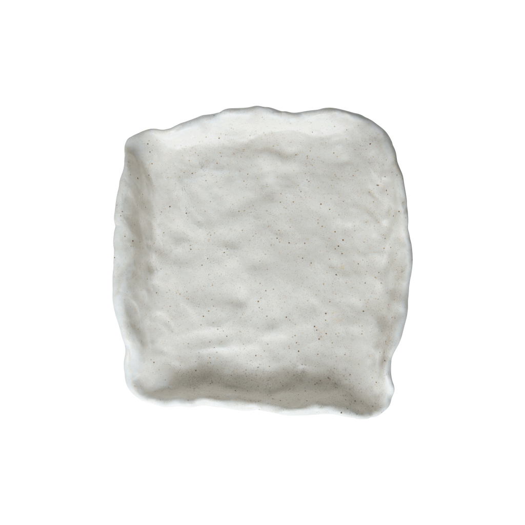 Handmade Brutalist Ceramic Ashtray by Xankia Covington features white speckled finish and handmade made square design.