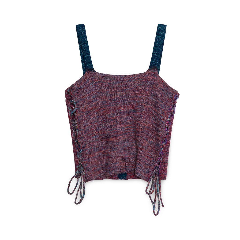 Handmade Knit Lace-Up Top features sparkle detail throughout.