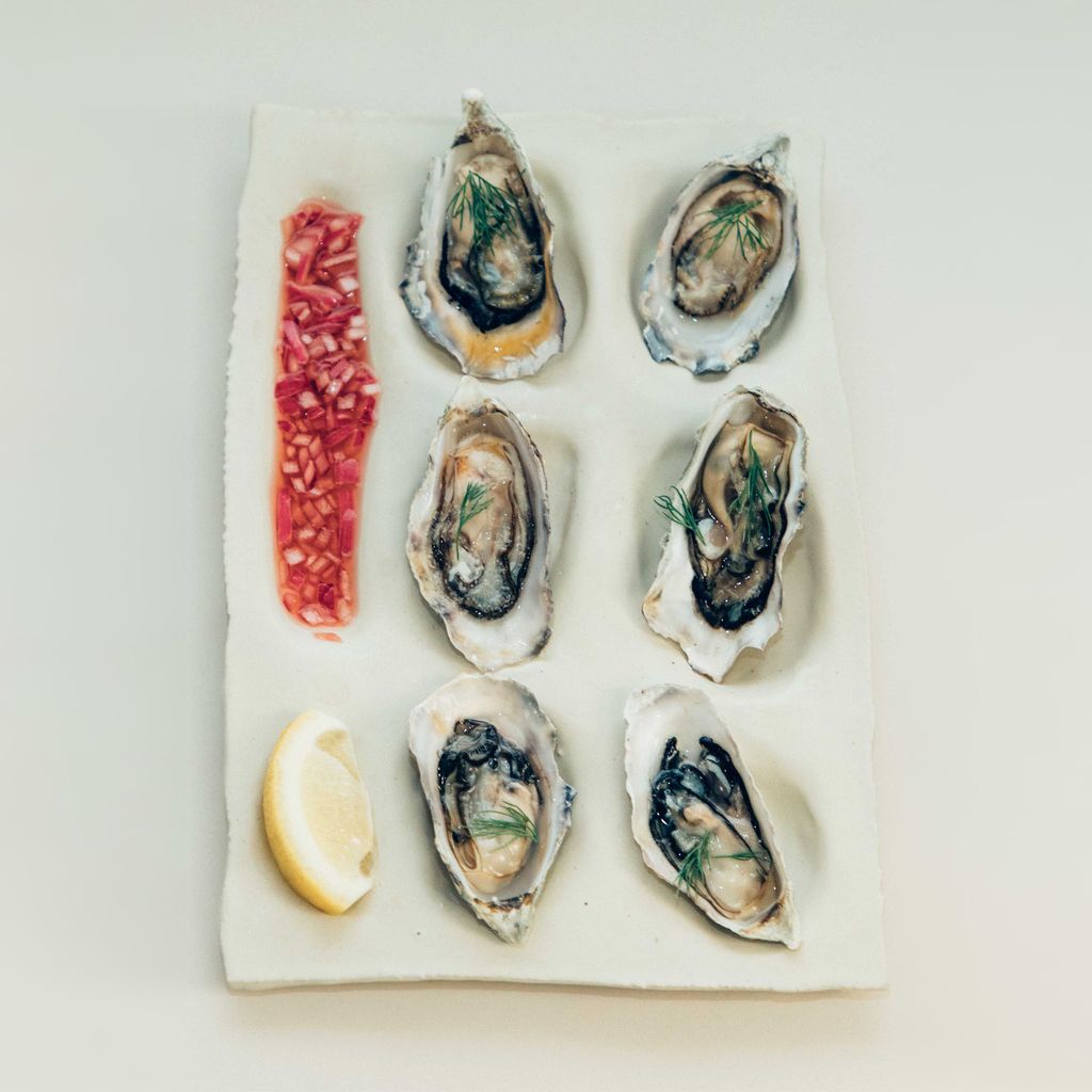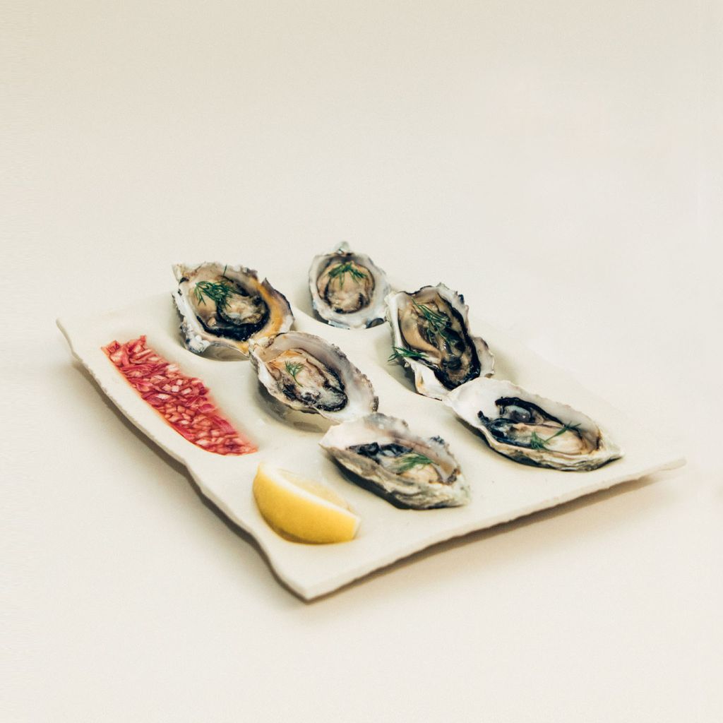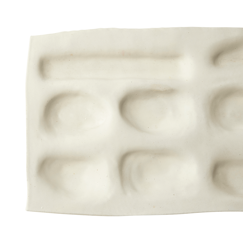 I am hand sculpted around real oyster shells and a modern day Picasso. It takes 48 hours to sculpt and dry me. I'm hand painted and 1:1. I hold six oysters, a slice of lemon, and a rectangular well for mignonette. I'm the ultimate party girl.