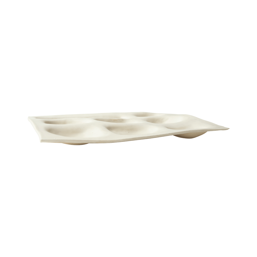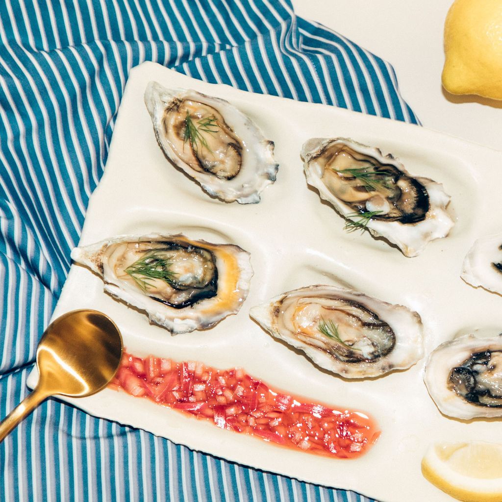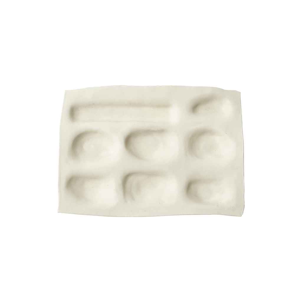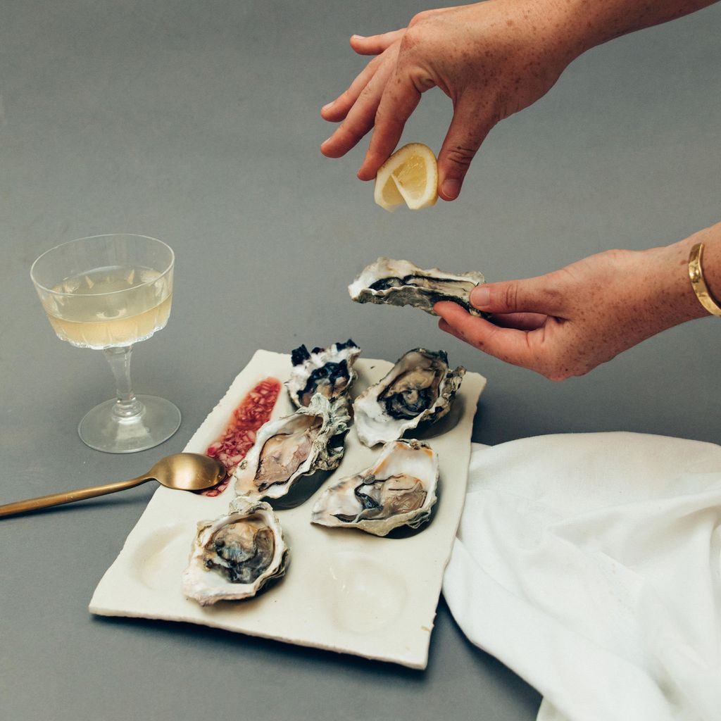 I am hand sculpted around real oyster shells and a modern day Picasso. It takes 48 hours to sculpt and dry me. I'm hand painted and 1:1. I hold six oysters, a slice of lemon, and a rectangular well for mignonette. I'm the ultimate party girl.