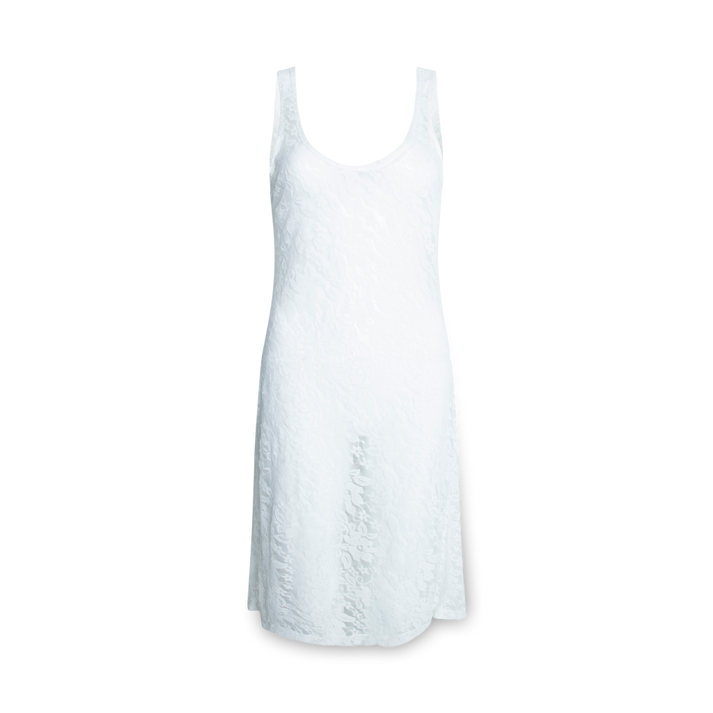 Harmony Dress is a bias cut slip fabricated with a vintage, ivory lace. This textile is from deadstock and the exact content is unknown.