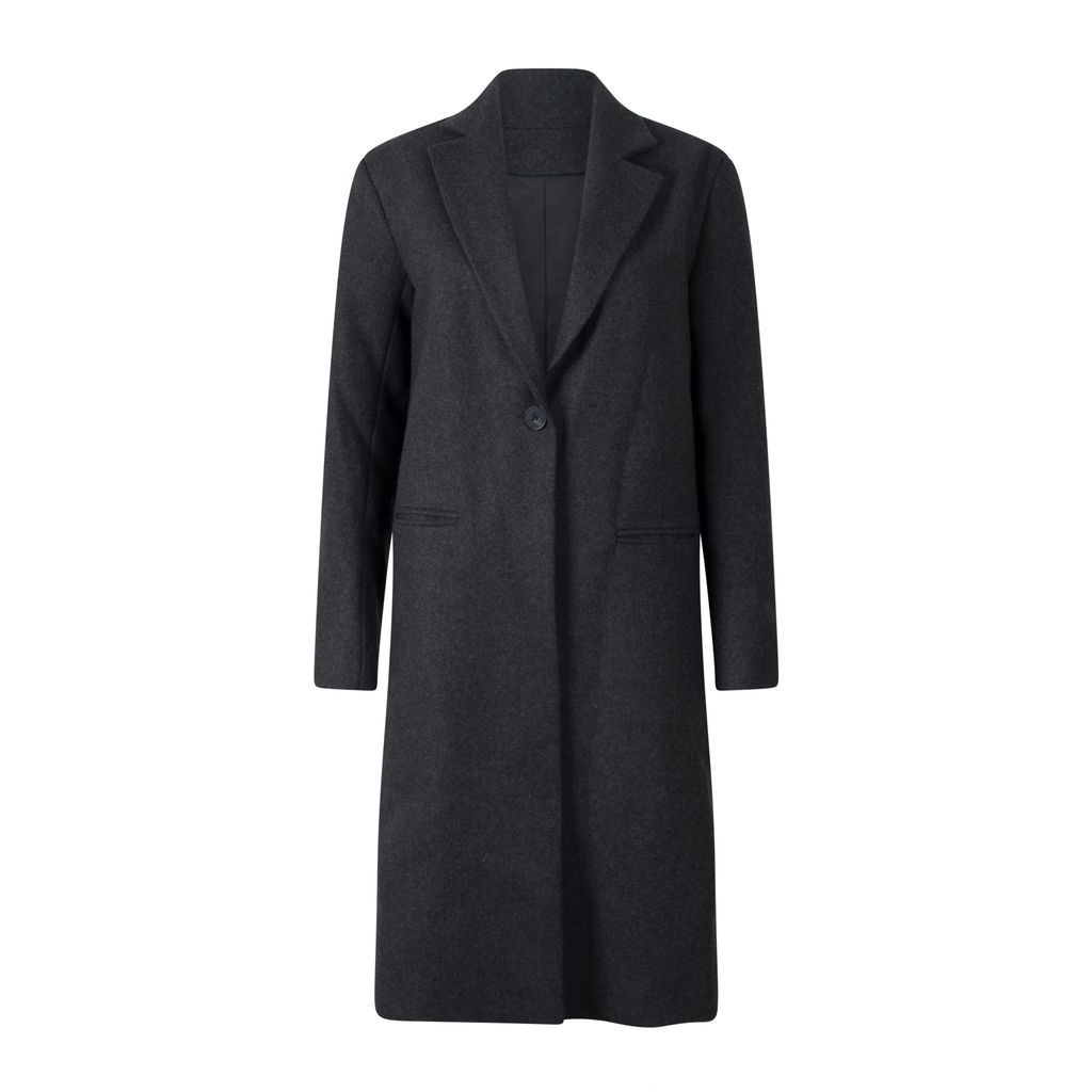This long women's coat from Harmony Paris, features a lapel collar neckline, single front button closure, front slit pockets, long sleeves, and a secret inner chest pocket detail. Gently worn in amazing condition. Perfect for looking chic in winter weather.