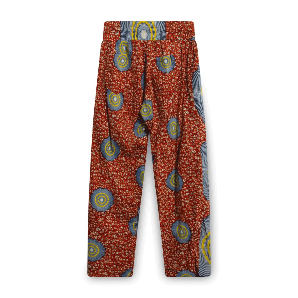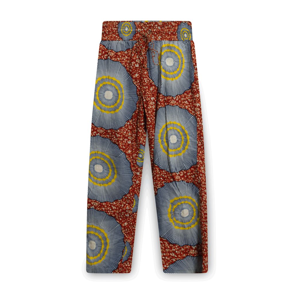 These lightweight cotton fabric pants from Harun Intl. feature an elasticized waistband with drawstring ties, side pockets, and back patch pockets. Silver-toned hardware. Pre-owned. In excellent condition.