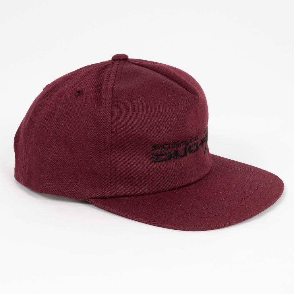 This hat from Hathenbruck is a tribute to the 90's Japanese gaming console, the PC Engine Duo-RX. Features 5 panel design, tonal stitching, contrast colored PC Engine Duo-RX embroidery on crown, and snapback closure.