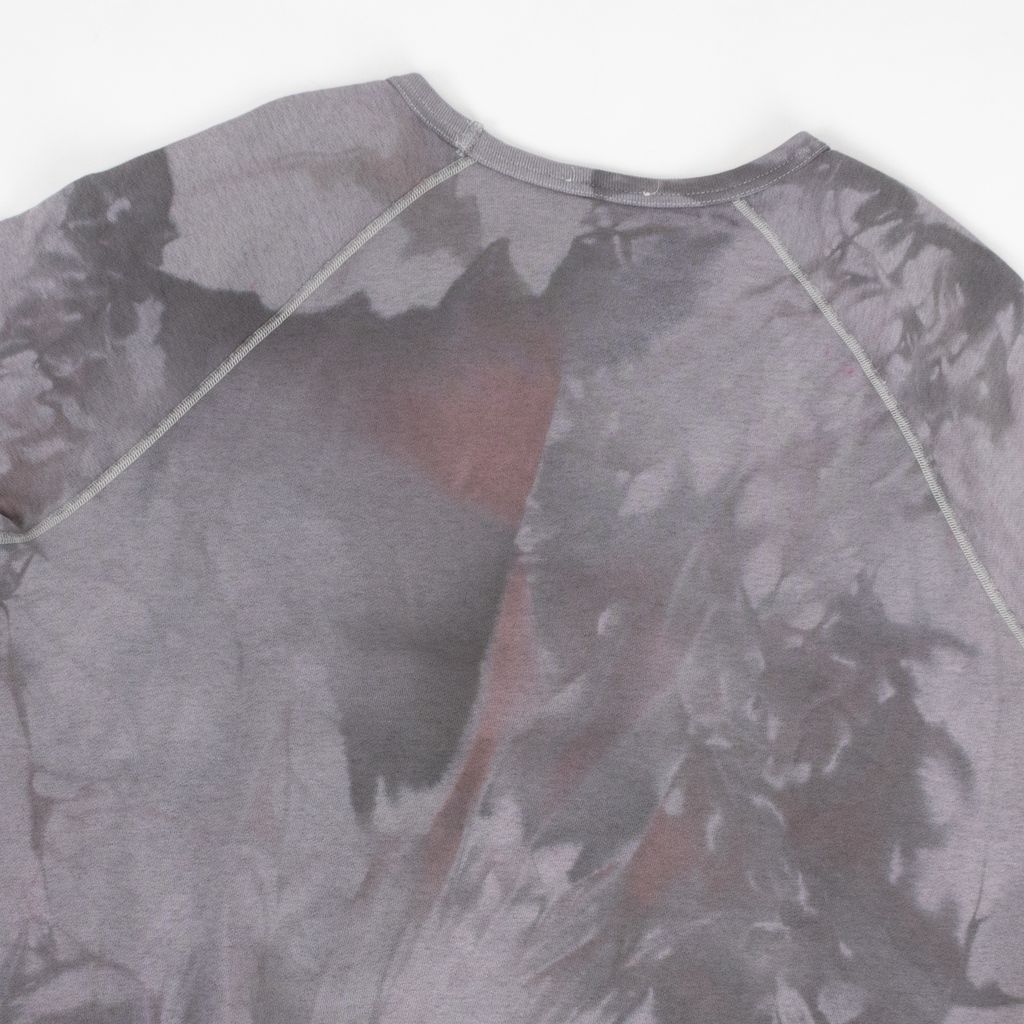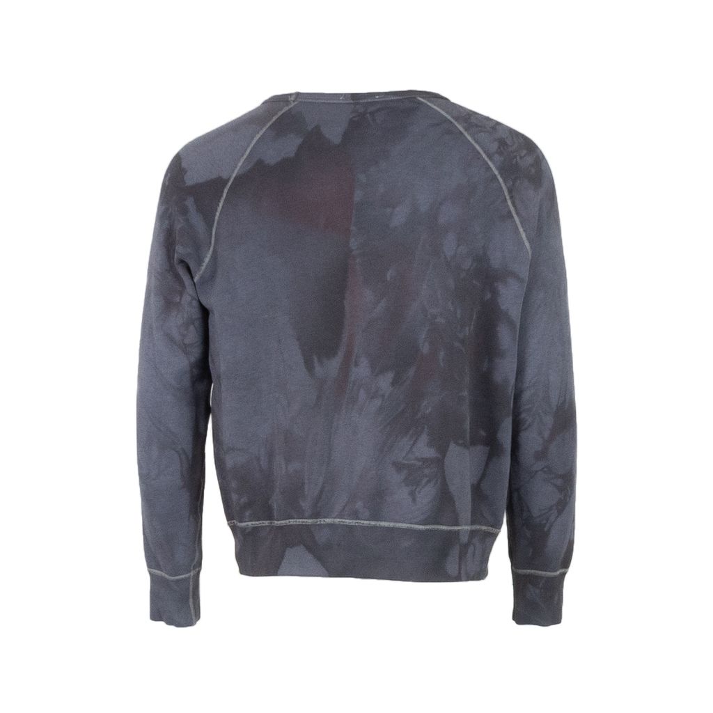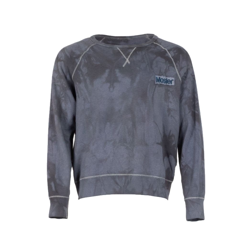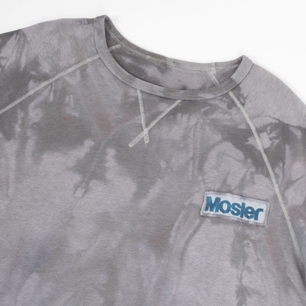 Another one off piece from Hathenbruck, this oversized pullover has been tie-dyed to perfection. Features boxy and relaxed fit, raglan style sleeves, contrast-colored stitching, wide neck, and Mosler patch on left side of chest.