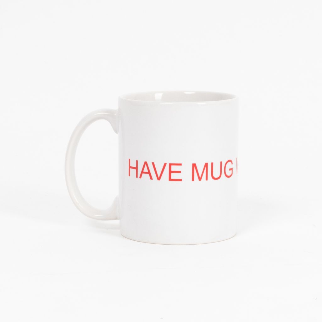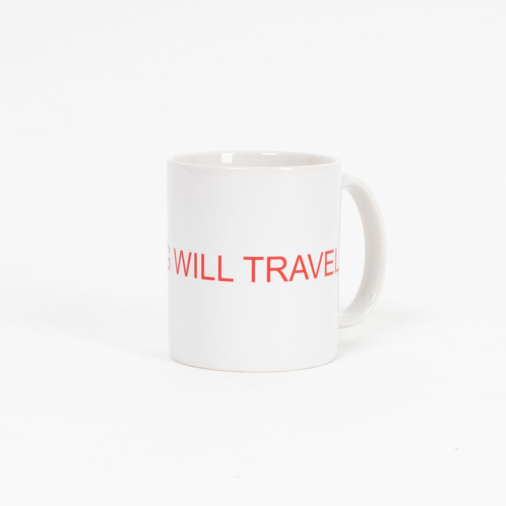 Let your cup do the talking for you, especially on your groggiest Mondays, with this printed coffee mug. Features white ceramic body, C-shaped handle, and contrast colored Have Mug Will Travel wrap around text.